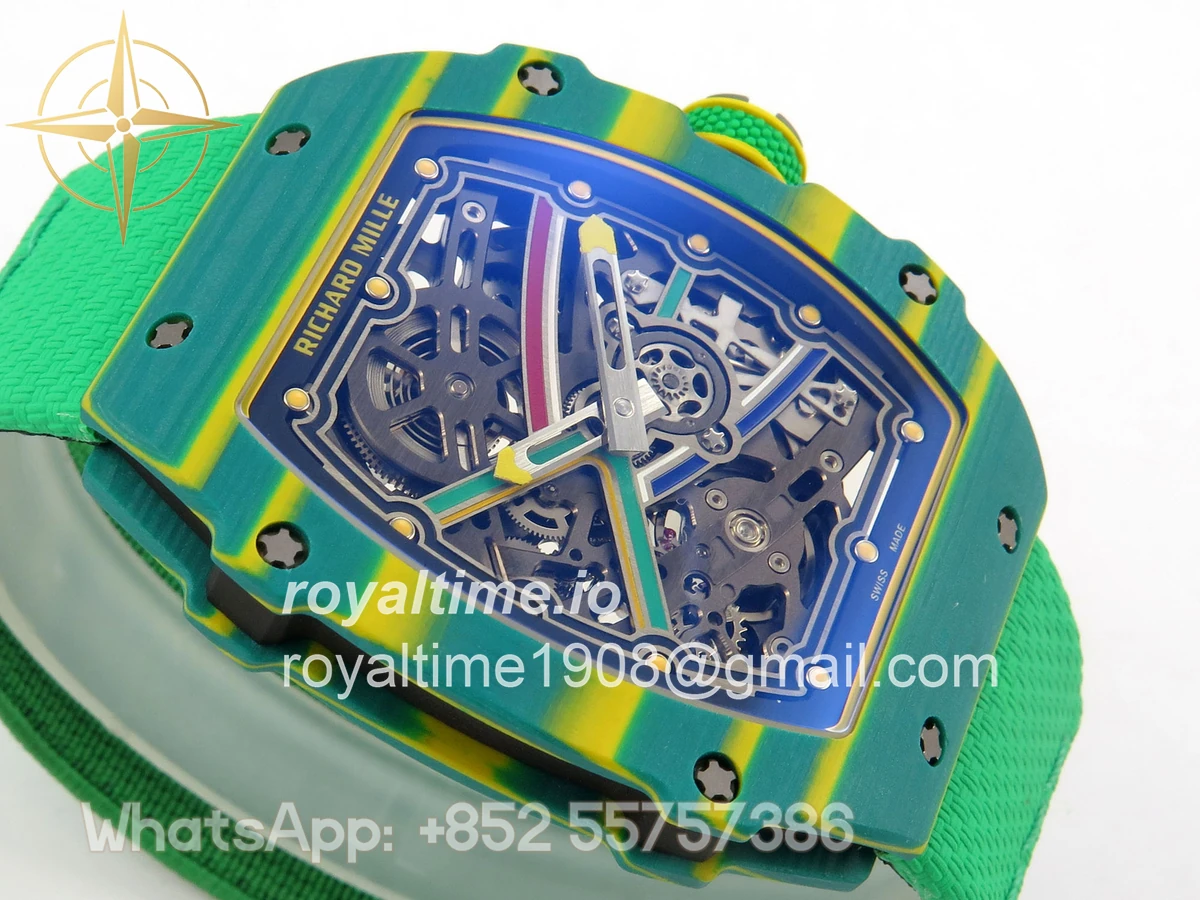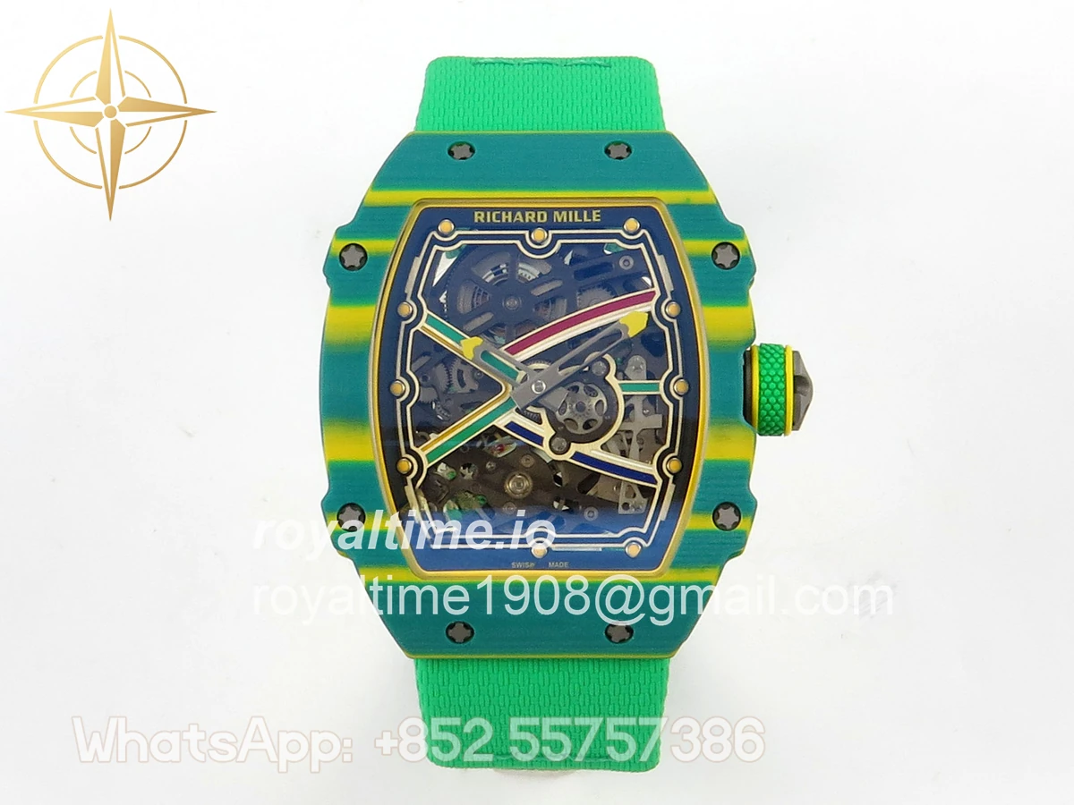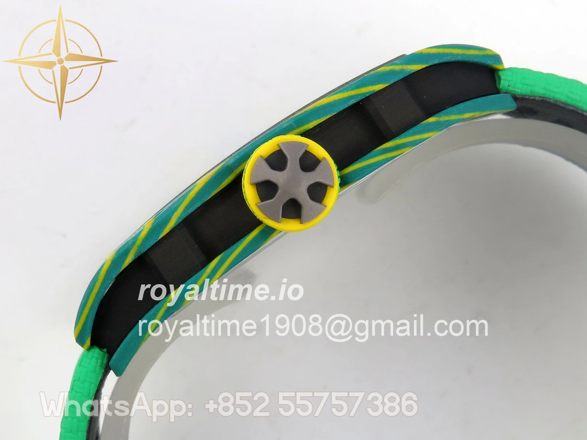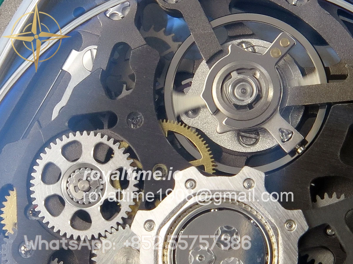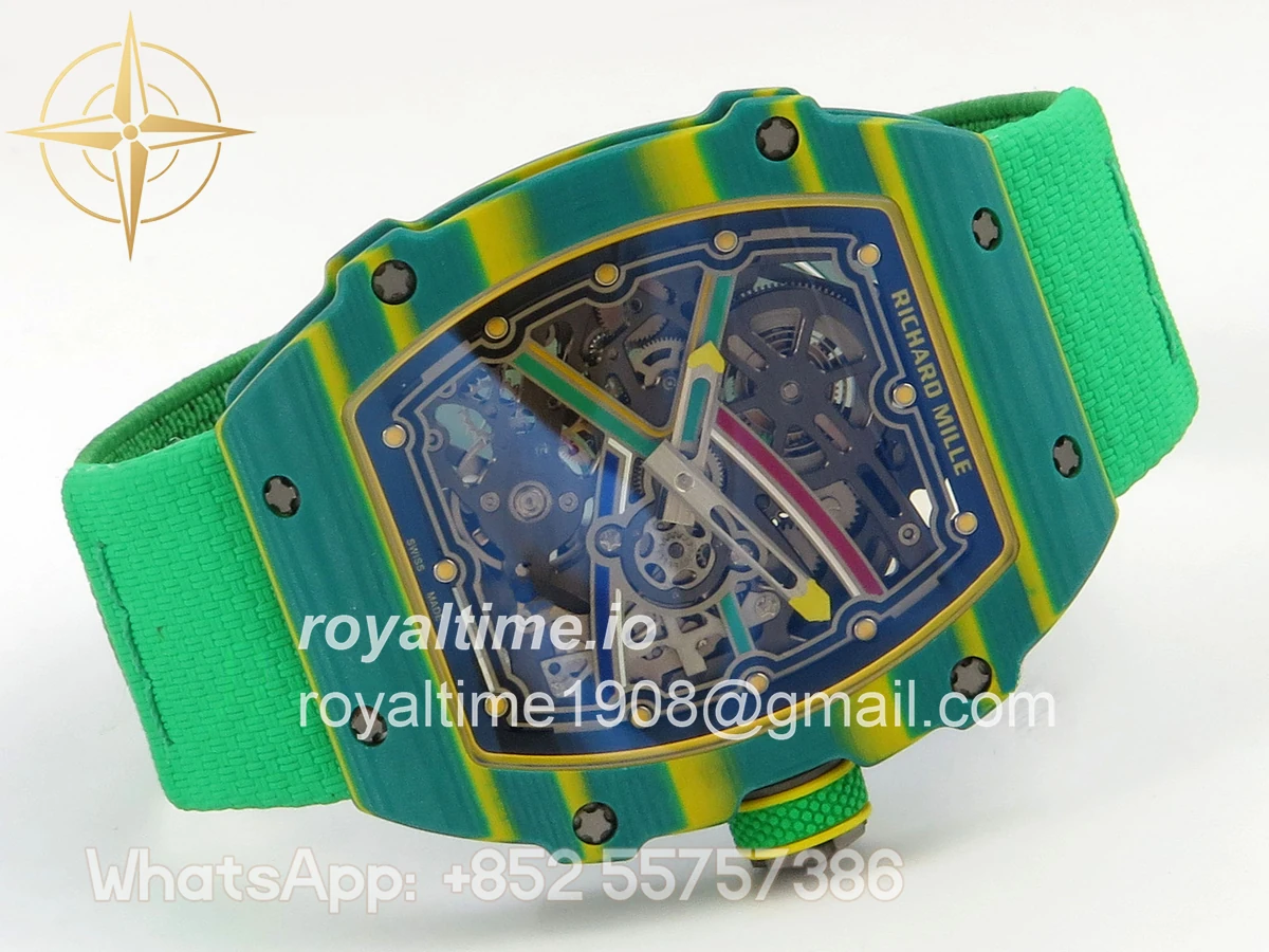 Size 39mm x 7.8mm (same size as genuine) Movement Asian modified clone CRMA7 skeleton movement Functions Hours and minutes display Case Green NTPT case with unique pattern Crystal Arc scratch-proof sapphire crystal with AR coating Dial Skeleton dial Strap Green Elastic strap Clasp Deployant clasp Water resistance >50 Meters Please be informed that this rating is merely a guide. We do do not advise submerging or immersing any replica watch in water unless you have had your watch water-proofed by a professional. We do not guarantee the product’s water-resistance and as such we do not refund, offer store credit, exchange or do a free repair on any watch that has water damage.