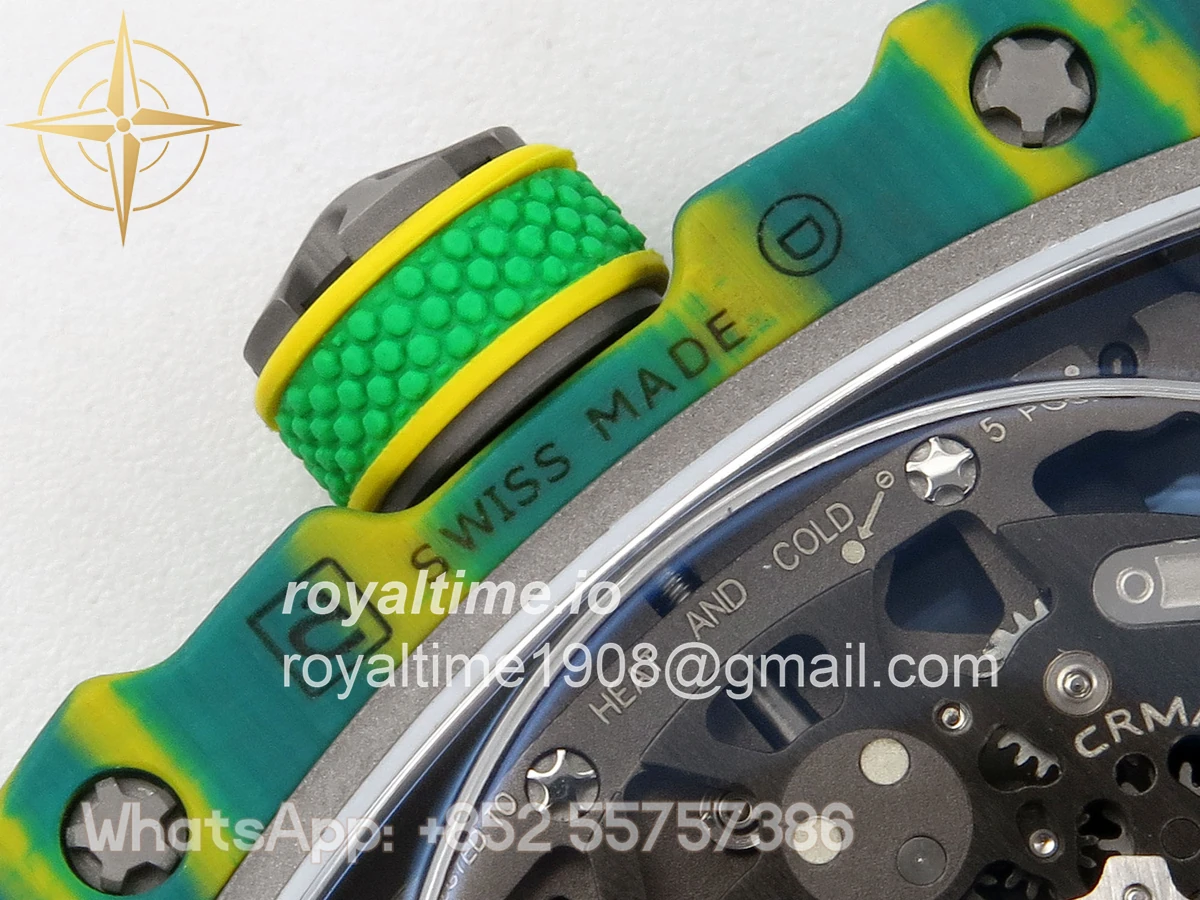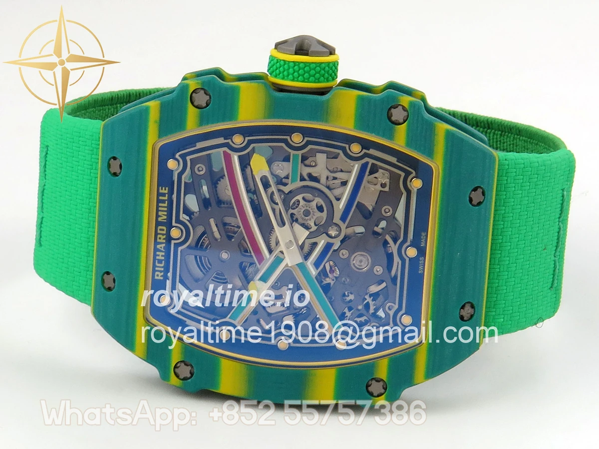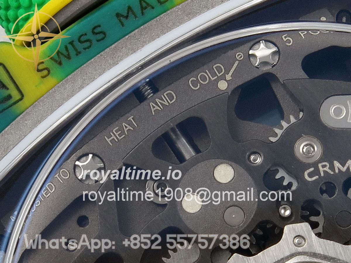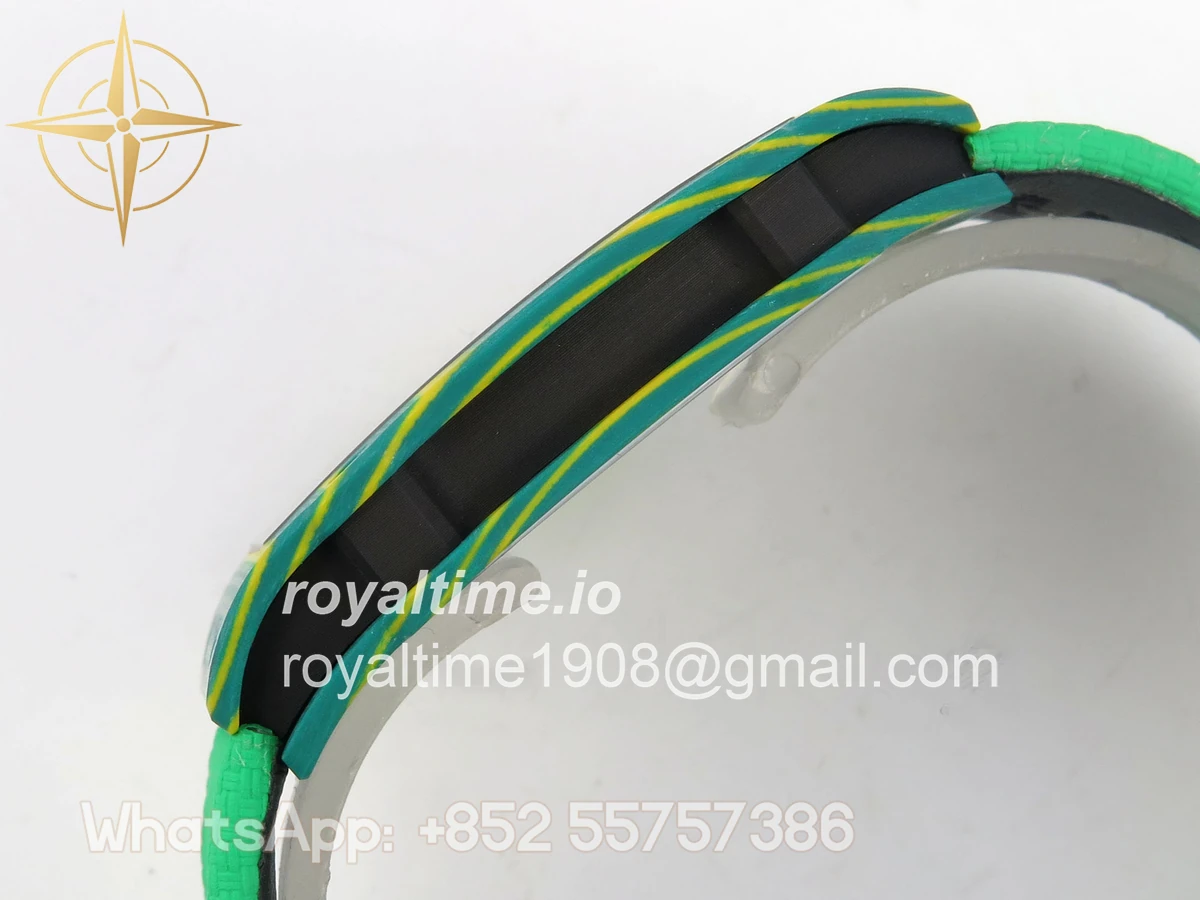 Size 39mm x 7.8mm (same size as genuine) Movement Asian modified clone CRMA7 skeleton movement Functions Hours and minutes display Case Green NTPT case with unique pattern Crystal Arc scratch-proof sapphire crystal with AR coating Dial Skeleton dial Strap Green Elastic strap Clasp Deployant clasp Water resistance >50 Meters Please be informed that this rating is merely a guide. We do do not advise submerging or immersing any replica watch in water unless you have had your watch water-proofed by a professional. We do not guarantee the product’s water-resistance and as such we do not refund, offer store credit, exchange or do a free repair on any watch that has water damage.