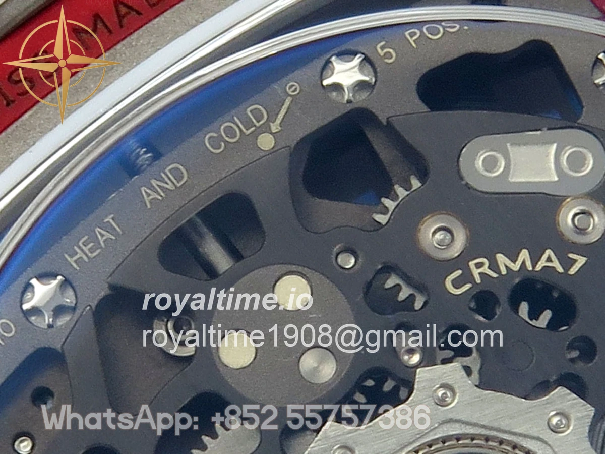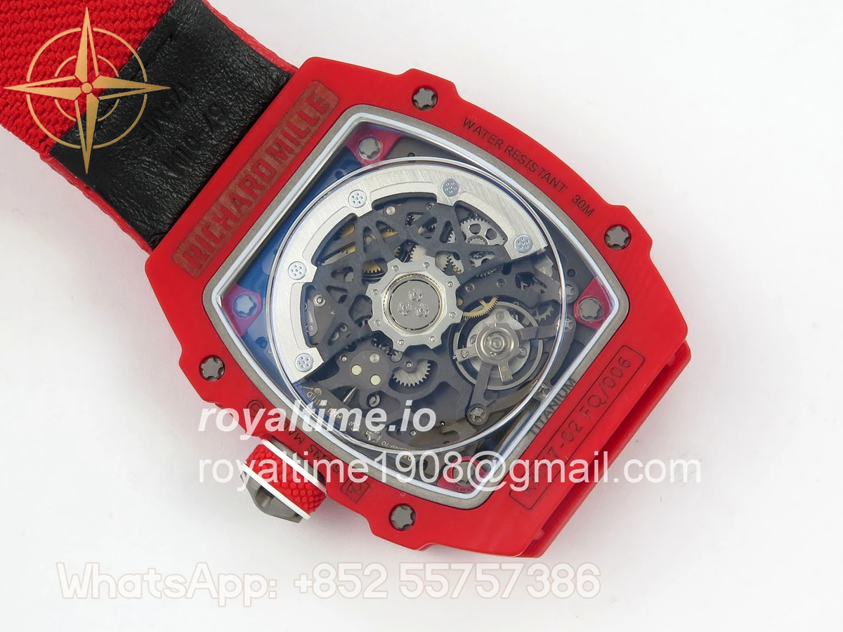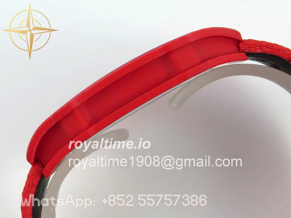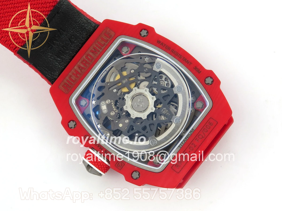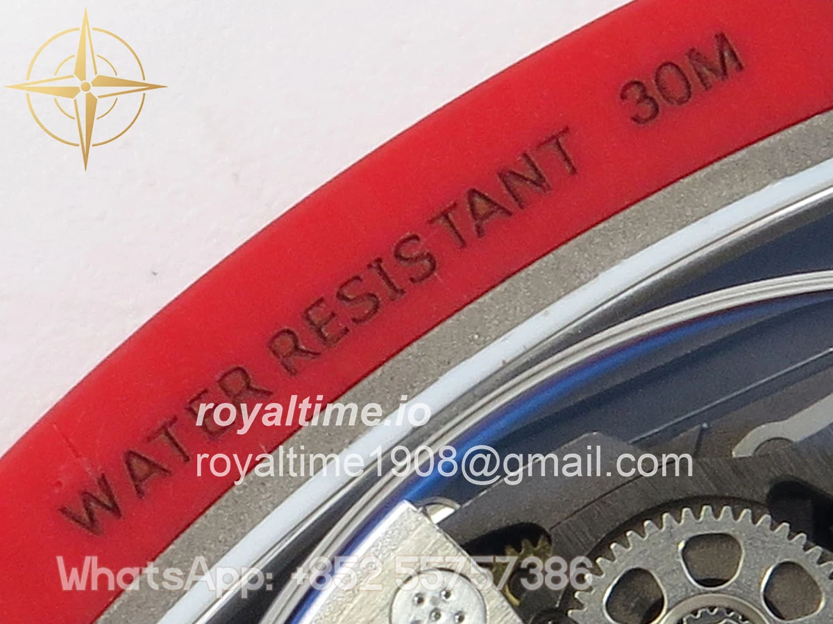 Size 39mm x 7.8mm (same size as genuine) Movement Asian modified clone CRMA7 skeleton movement Functions Hours and minutes display Case Red NTPT case with updated unique pattern Crystal Arc scratch-proof sapphire crystal with AR coating Dial Skeleton dial Strap Red Elastic strap Water resistance >50 Meters Please be informed that this rating is merely a guide. We do do not advise submerging or immersing any replica watch in water unless you have had your watch water-proofed by a professional. We do not guarantee the product’s water-resistance and as such we do not refund, offer store credit, exchange or do a free repair on any watch that has water damage.