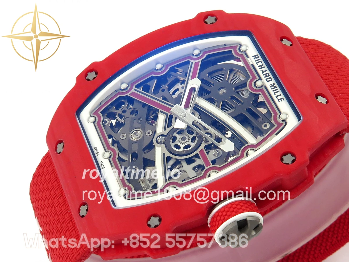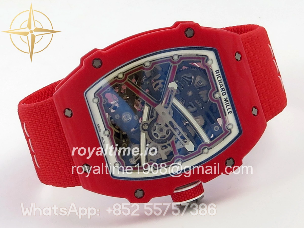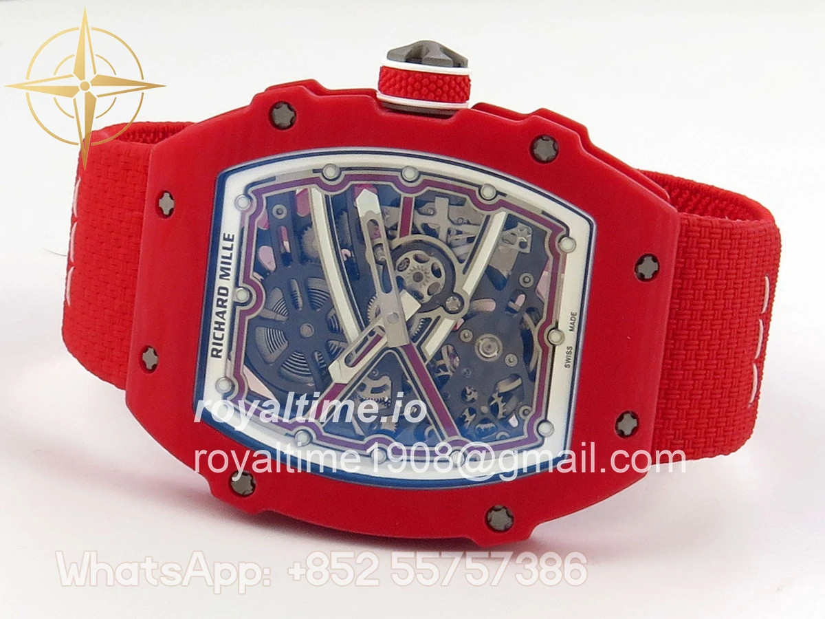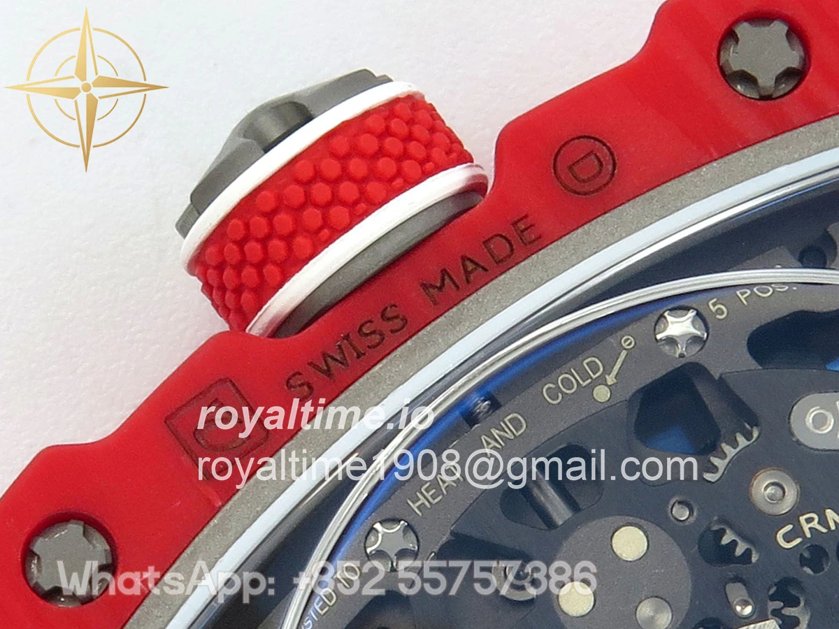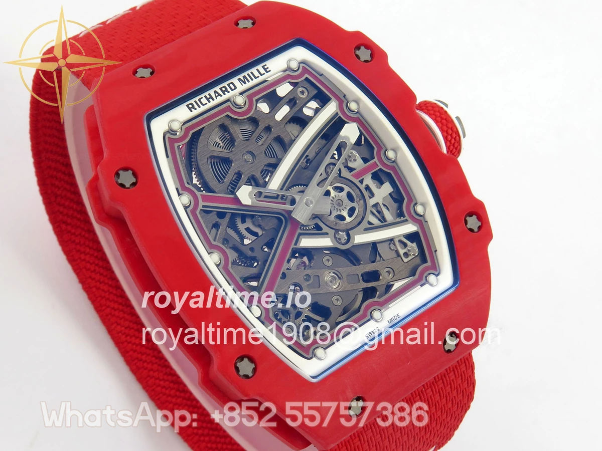 Size 39mm x 7.8mm (same size as genuine) Movement Asian modified clone CRMA7 skeleton movement Functions Hours and minutes display Case Red NTPT case with updated unique pattern Crystal Arc scratch-proof sapphire crystal with AR coating Dial Skeleton dial Strap Red Elastic strap Water resistance >50 Meters Please be informed that this rating is merely a guide. We do do not advise submerging or immersing any replica watch in water unless you have had your watch water-proofed by a professional. We do not guarantee the product’s water-resistance and as such we do not refund, offer store credit, exchange or do a free repair on any watch that has water damage.