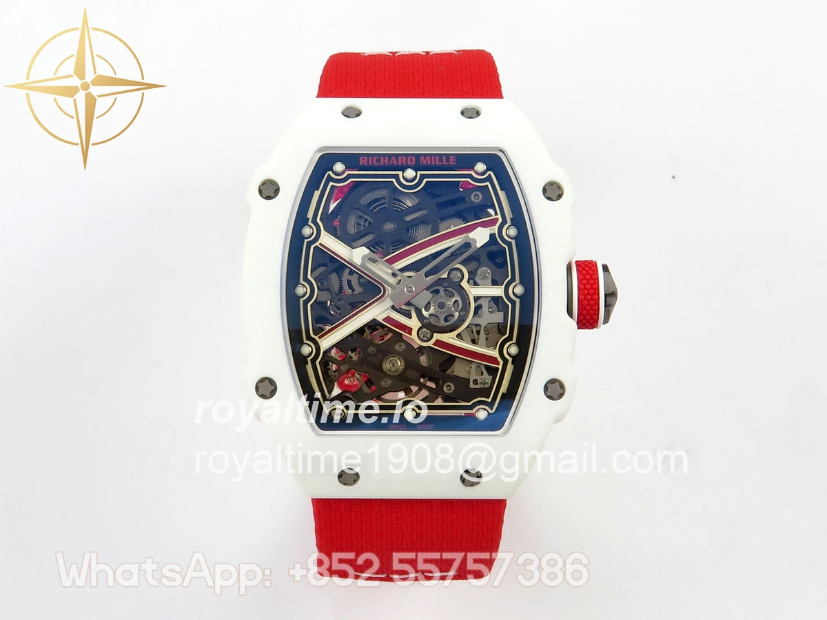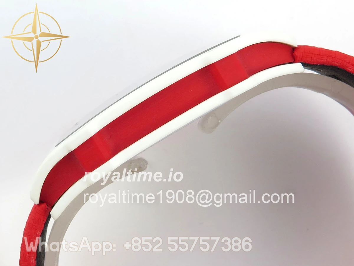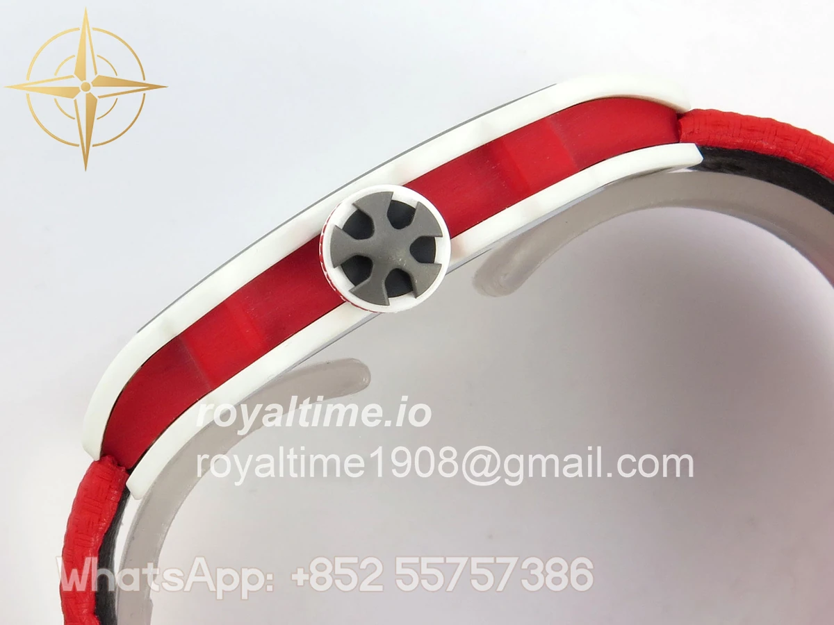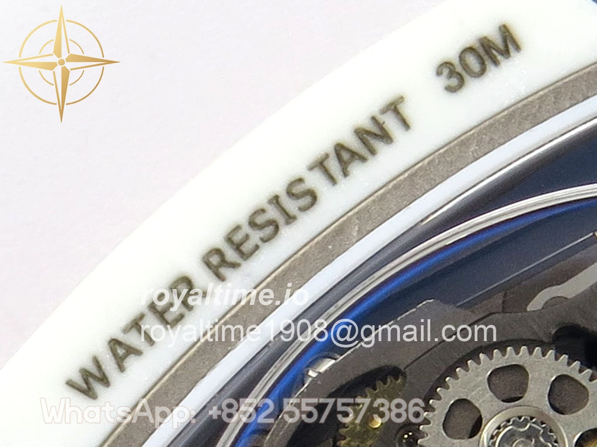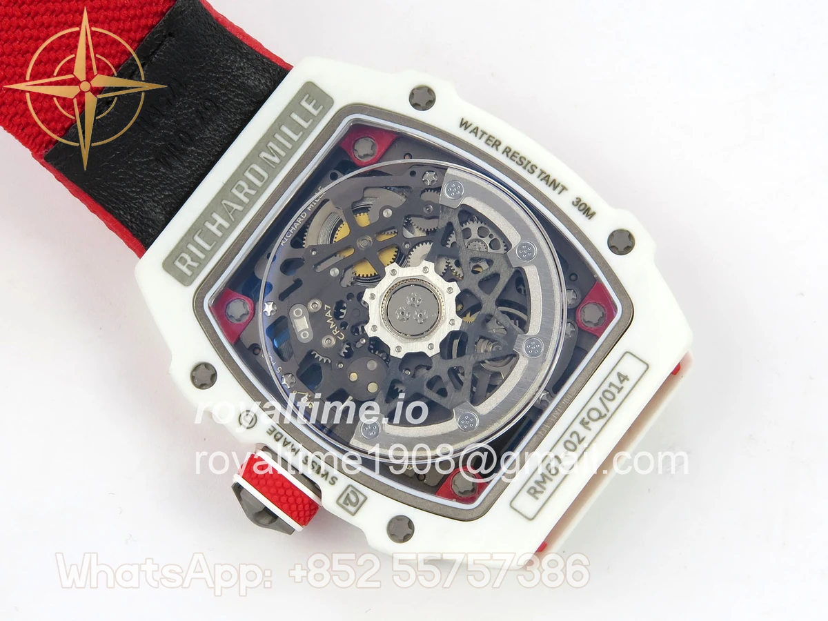 Size 39mm x 7.8mm (same size as genuine) Movement Asian modified clone CRMA7 skeleton movement Functions Hours and minutes display Case White NTPT case with updated unique pattern Crystal Arc scratch-proof sapphire crystal with AR coating Dial Skeleton dial Strap Red Elastic strap Water resistance >50 Meters Please be informed that this rating is merely a guide. We do do not advise submerging or immersing any replica watch in water unless you have had your watch water-proofed by a professional. We do not guarantee the product’s water-resistance and as such we do not refund, offer store credit, exchange or do a free repair on any watch that has water damage.