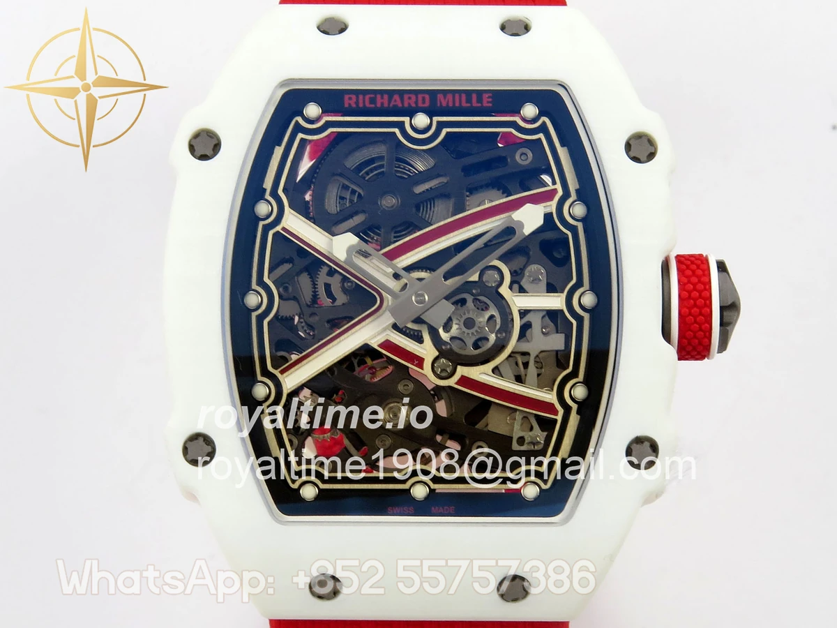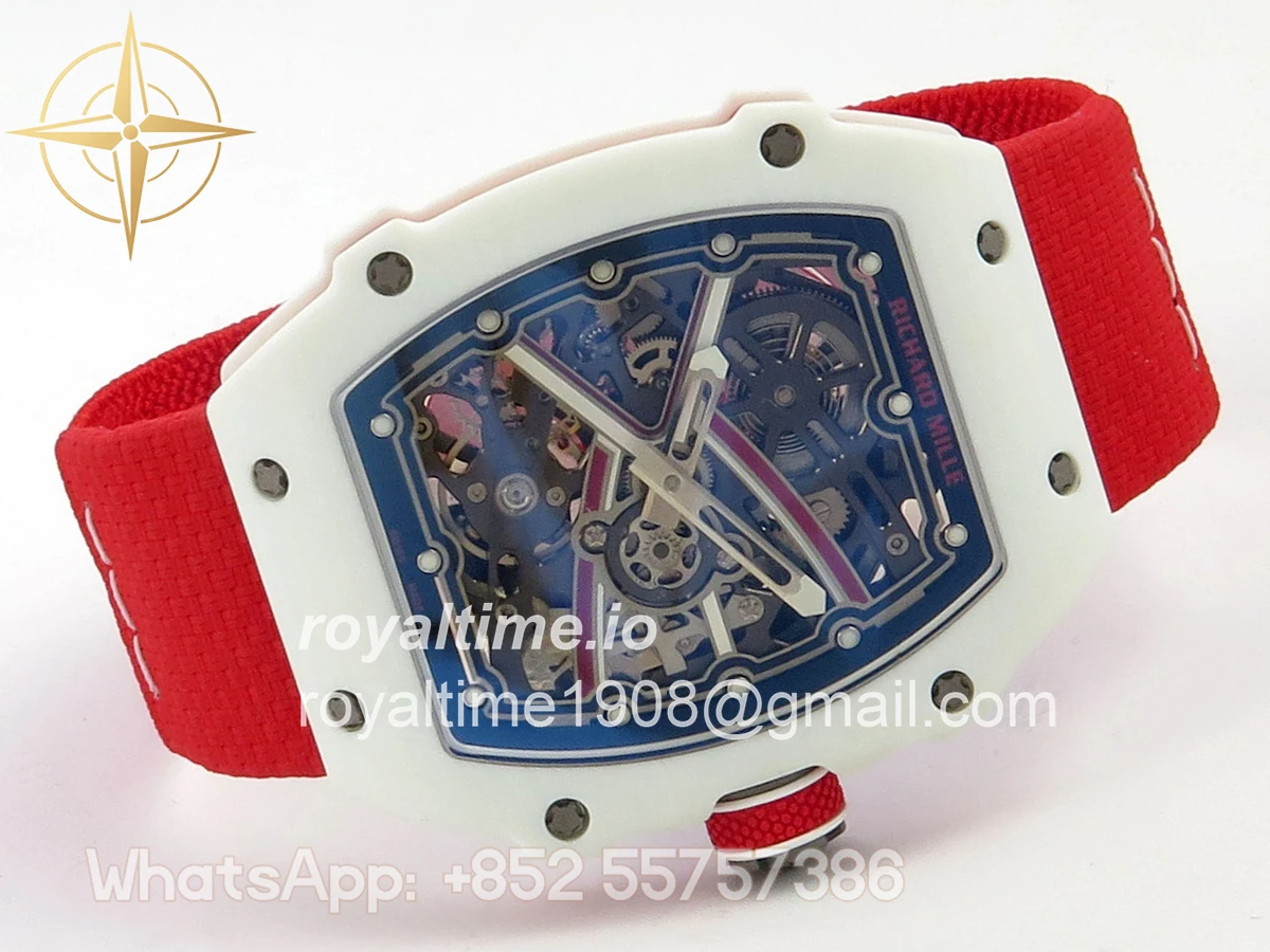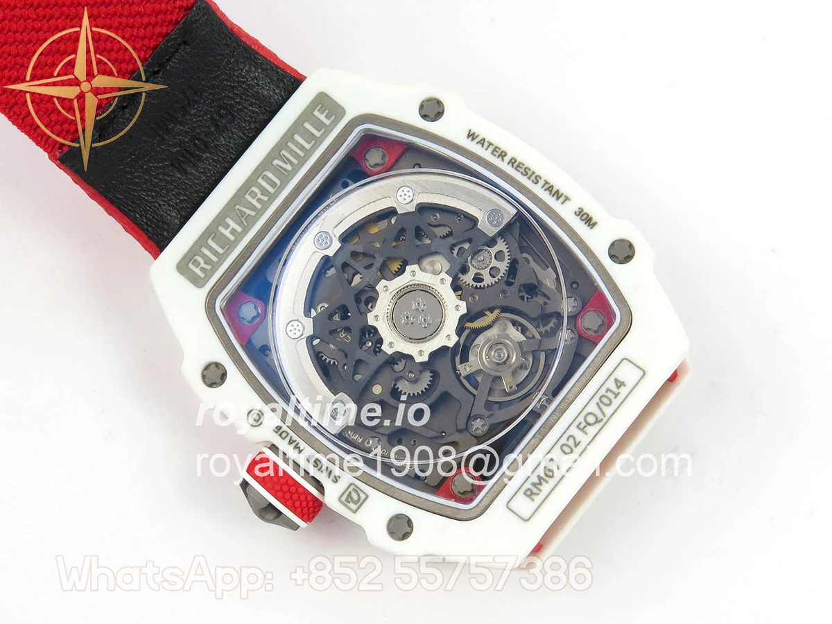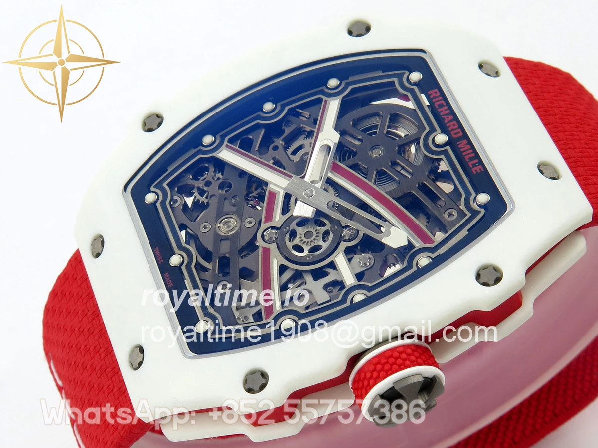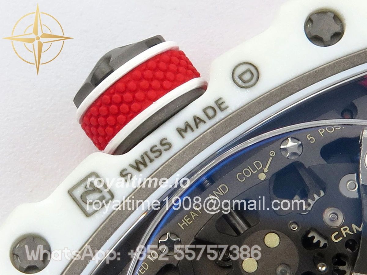Size 39mm x 7.8mm (same size as genuine) Movement Asian modified clone CRMA7 skeleton movement Functions Hours and minutes display Case White NTPT case with updated unique pattern Crystal Arc scratch-proof sapphire crystal with AR coating Dial Skeleton dial Strap Red Elastic strap Water resistance >50 Meters Please be informed that this rating is merely a guide. We do do not advise submerging or immersing any replica watch in water unless you have had your watch water-proofed by a professional. We do not guarantee the product’s water-resistance and as such we do not refund, offer store credit, exchange or do a free repair on any watch that has water damage.
