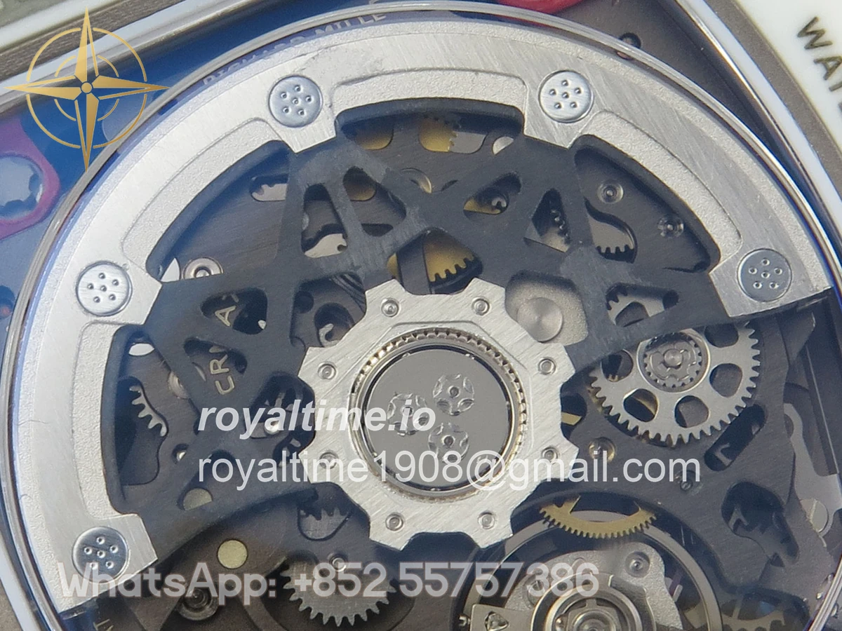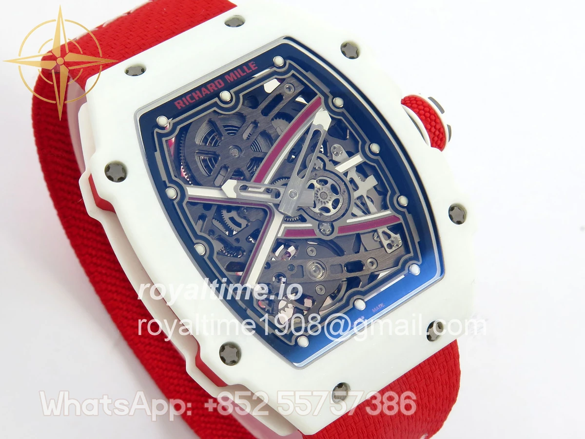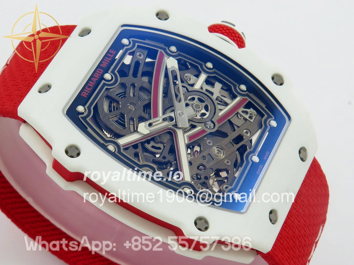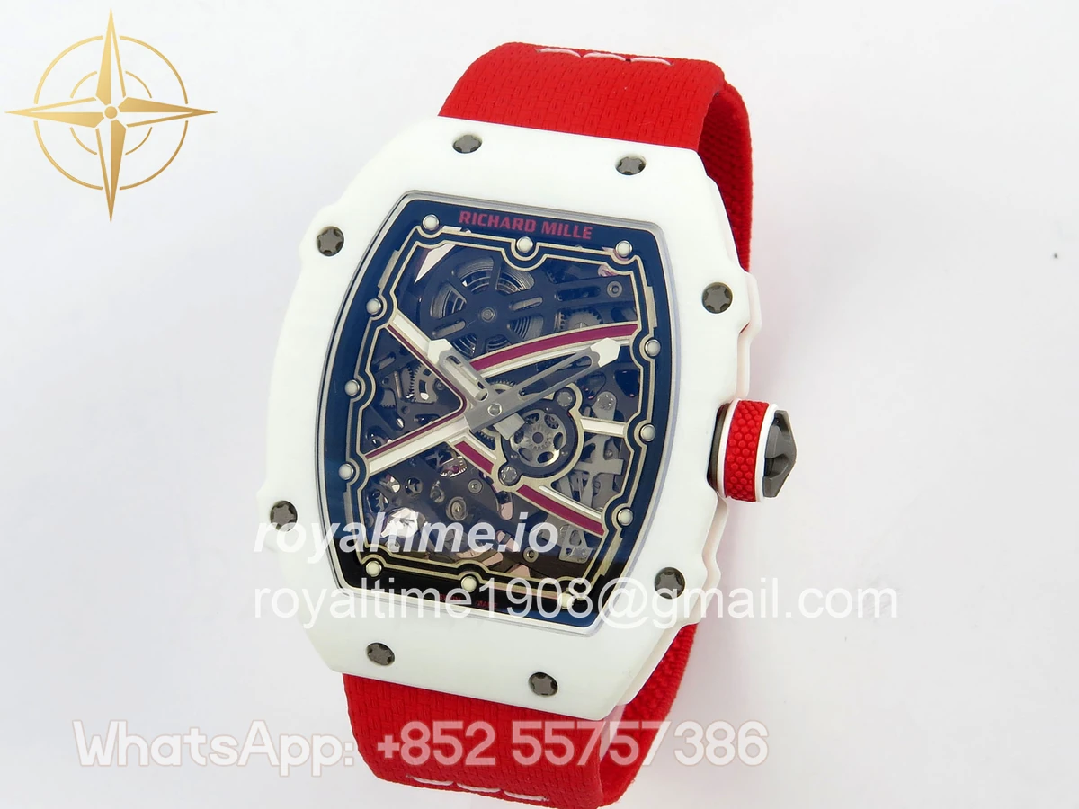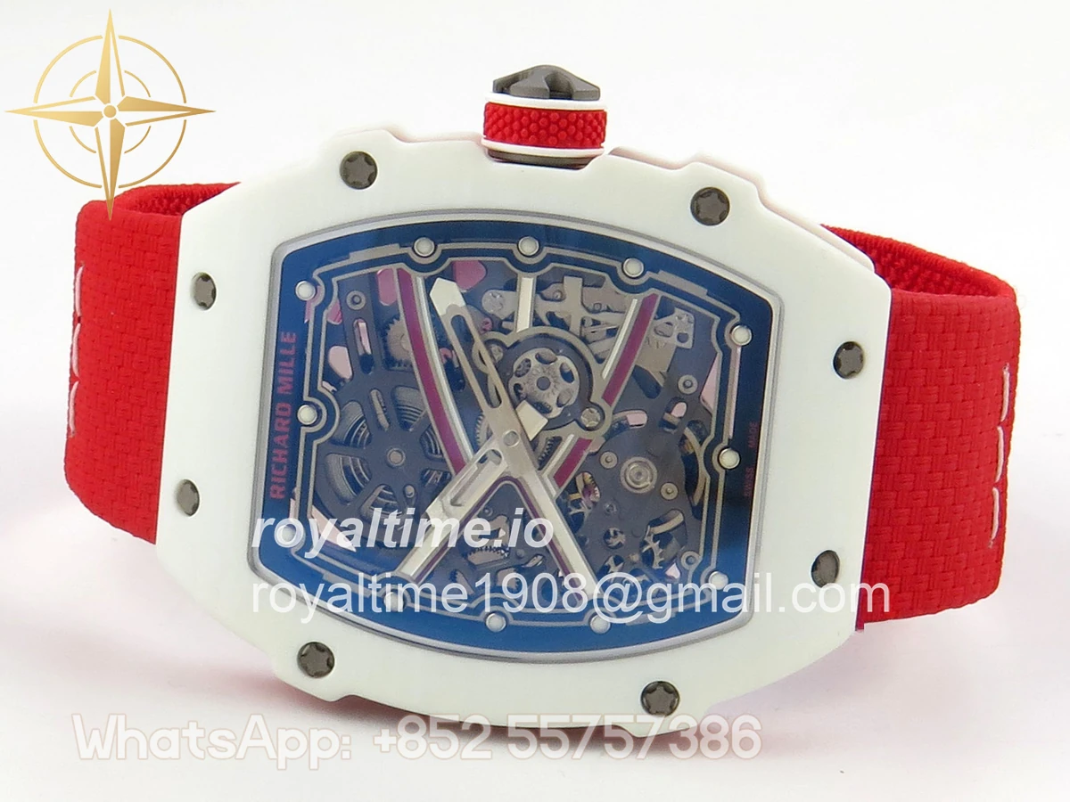 Size 39mm x 7.8mm (same size as genuine) Movement Asian modified clone CRMA7 skeleton movement Functions Hours and minutes display Case White NTPT case with updated unique pattern Crystal Arc scratch-proof sapphire crystal with AR coating Dial Skeleton dial Strap Red Elastic strap Water resistance >50 Meters Please be informed that this rating is merely a guide. We do do not advise submerging or immersing any replica watch in water unless you have had your watch water-proofed by a professional. We do not guarantee the product’s water-resistance and as such we do not refund, offer store credit, exchange or do a free repair on any watch that has water damage.