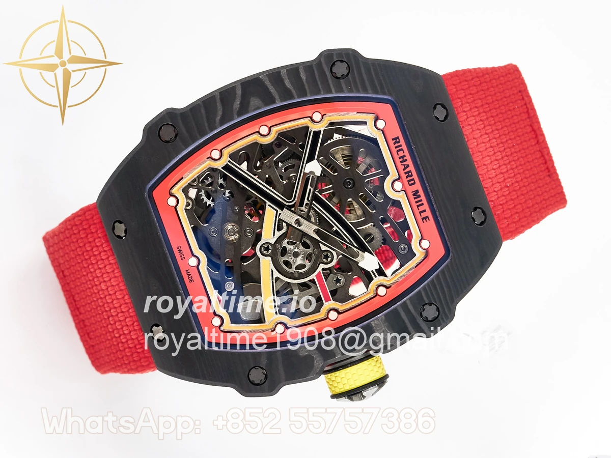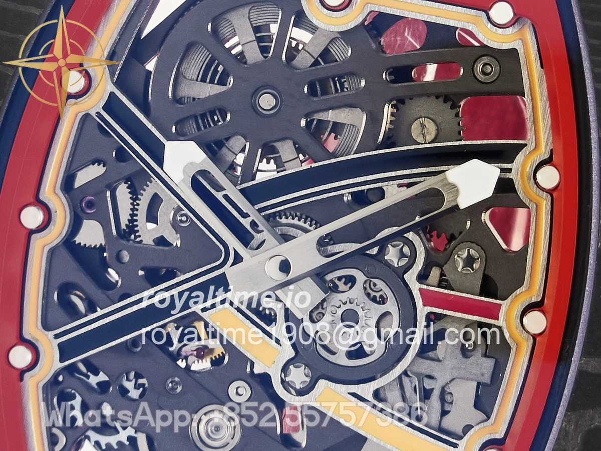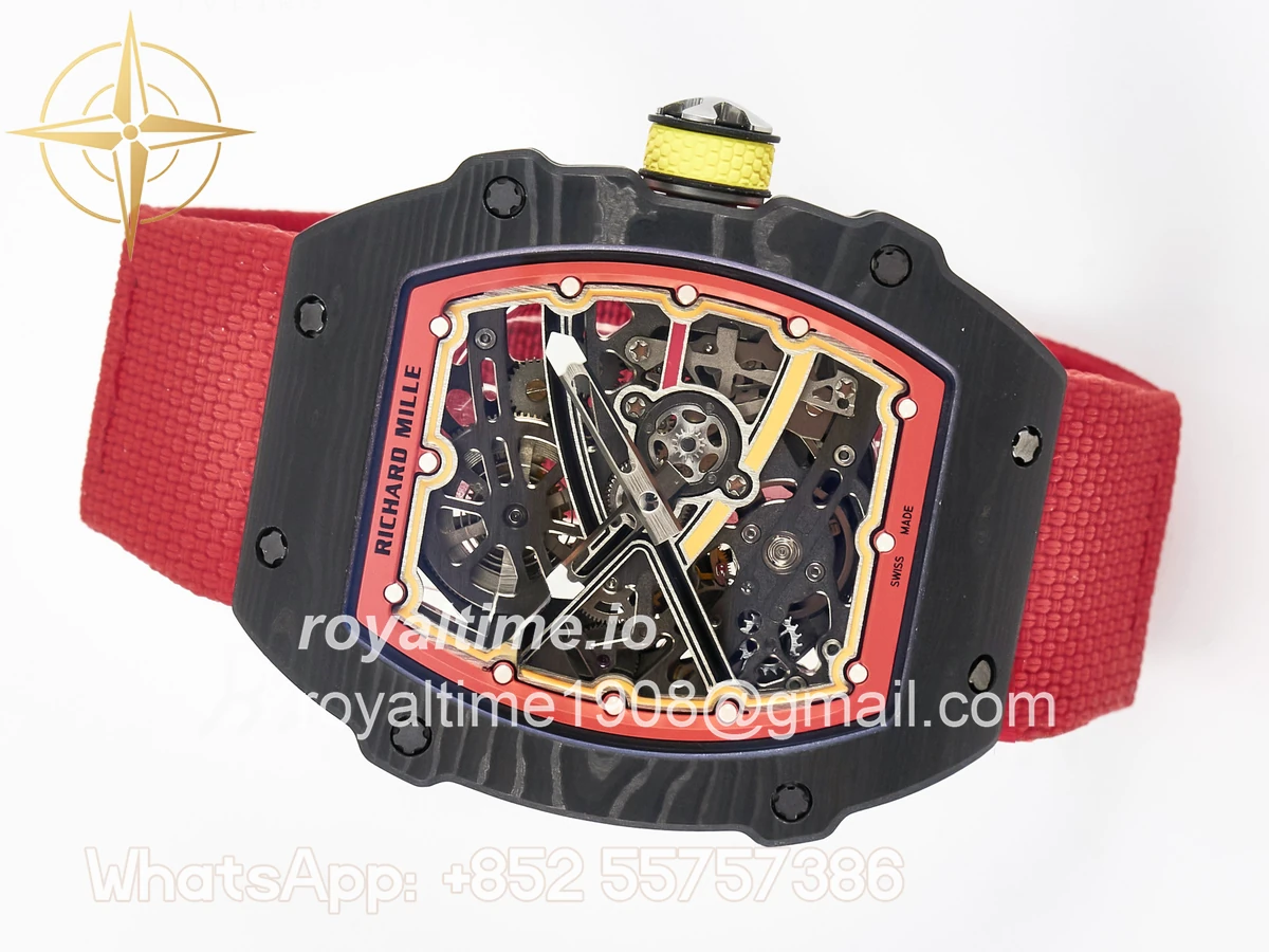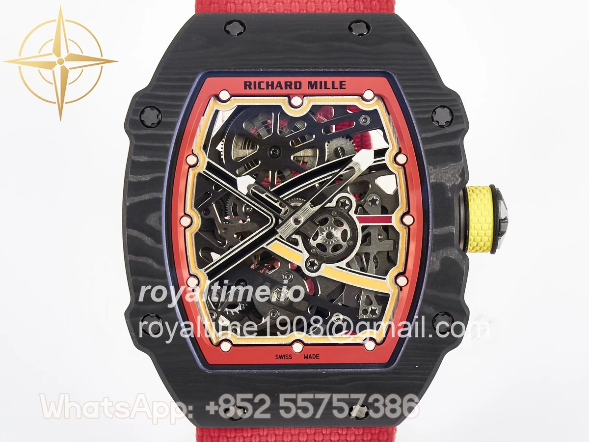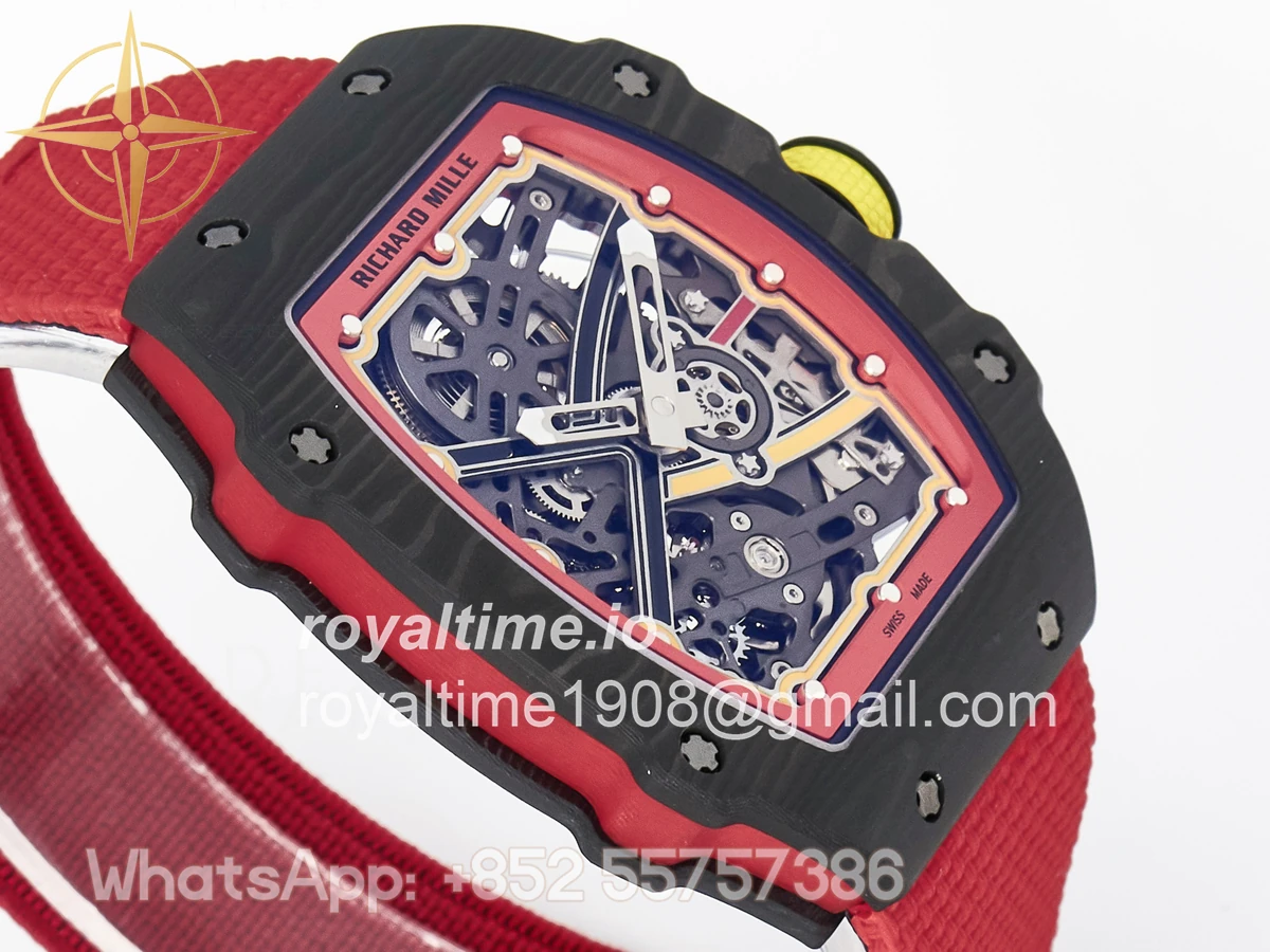 Size 39mm x 9mm Movement Asian modified clone CRMA7 skeleton movement Functions Hours and minutes display Case Black NTPT case Crystal Scratch-proof sapphire crystal with AR coating Dial Skeleton dial Strap Red nylon strap Water resistance >50 Meters