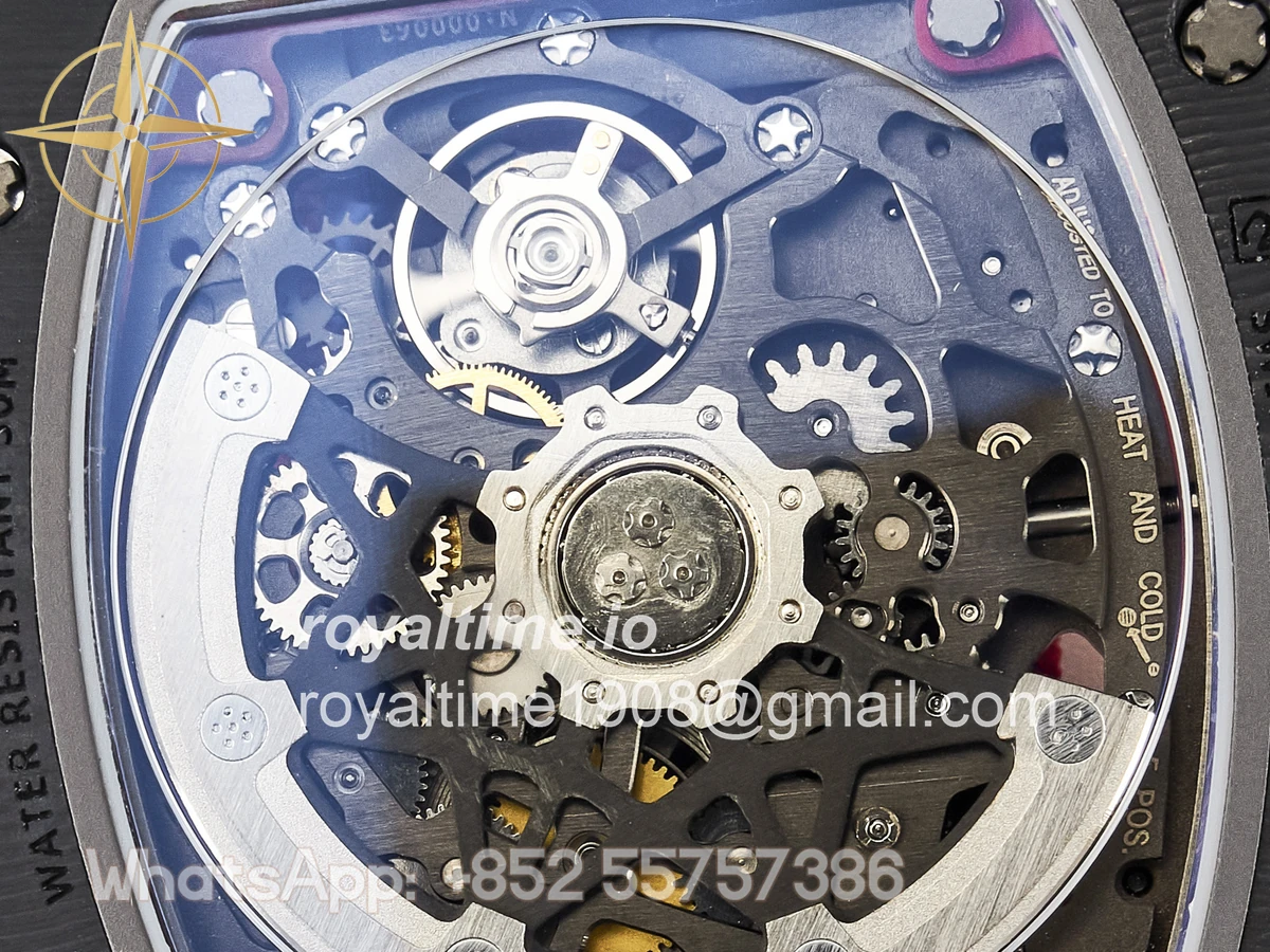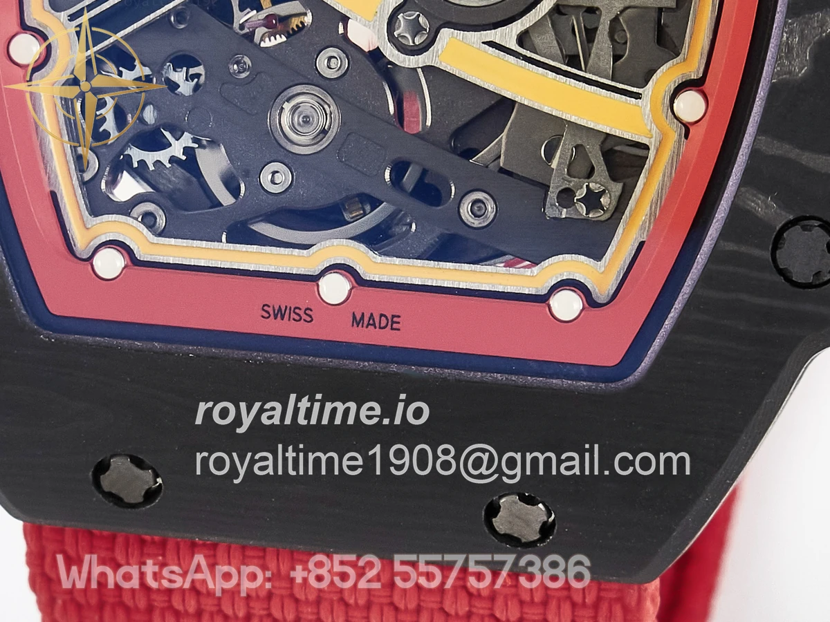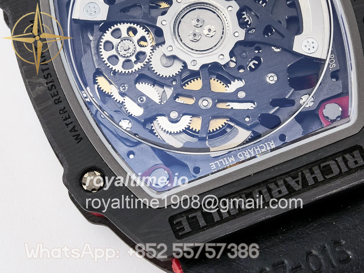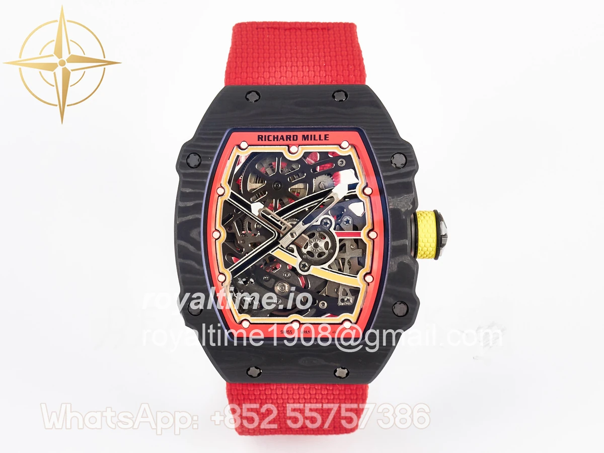 Size 39mm x 9mm Movement Asian modified clone CRMA7 skeleton movement Functions Hours and minutes display Case Black NTPT case Crystal Scratch-proof sapphire crystal with AR coating Dial Skeleton dial Strap Red nylon strap Water resistance >50 Meters