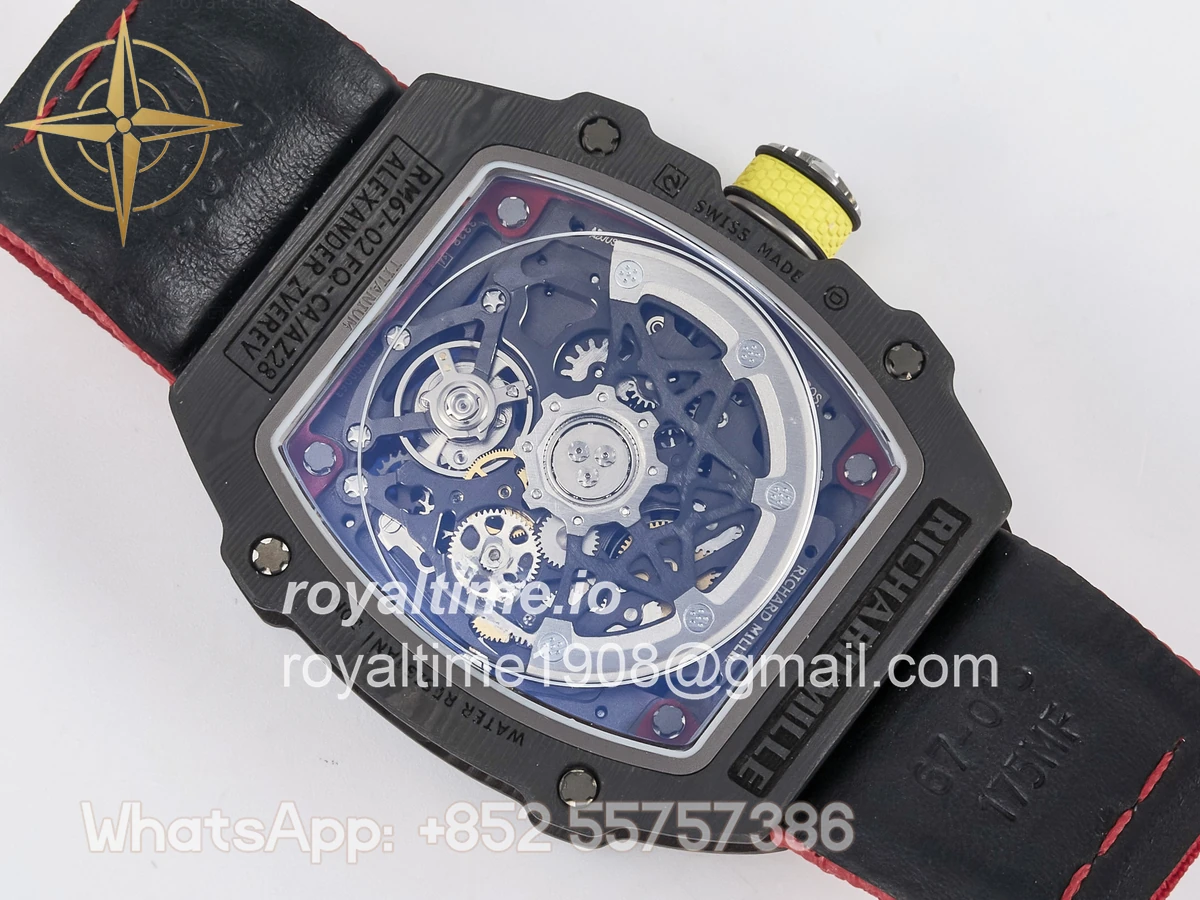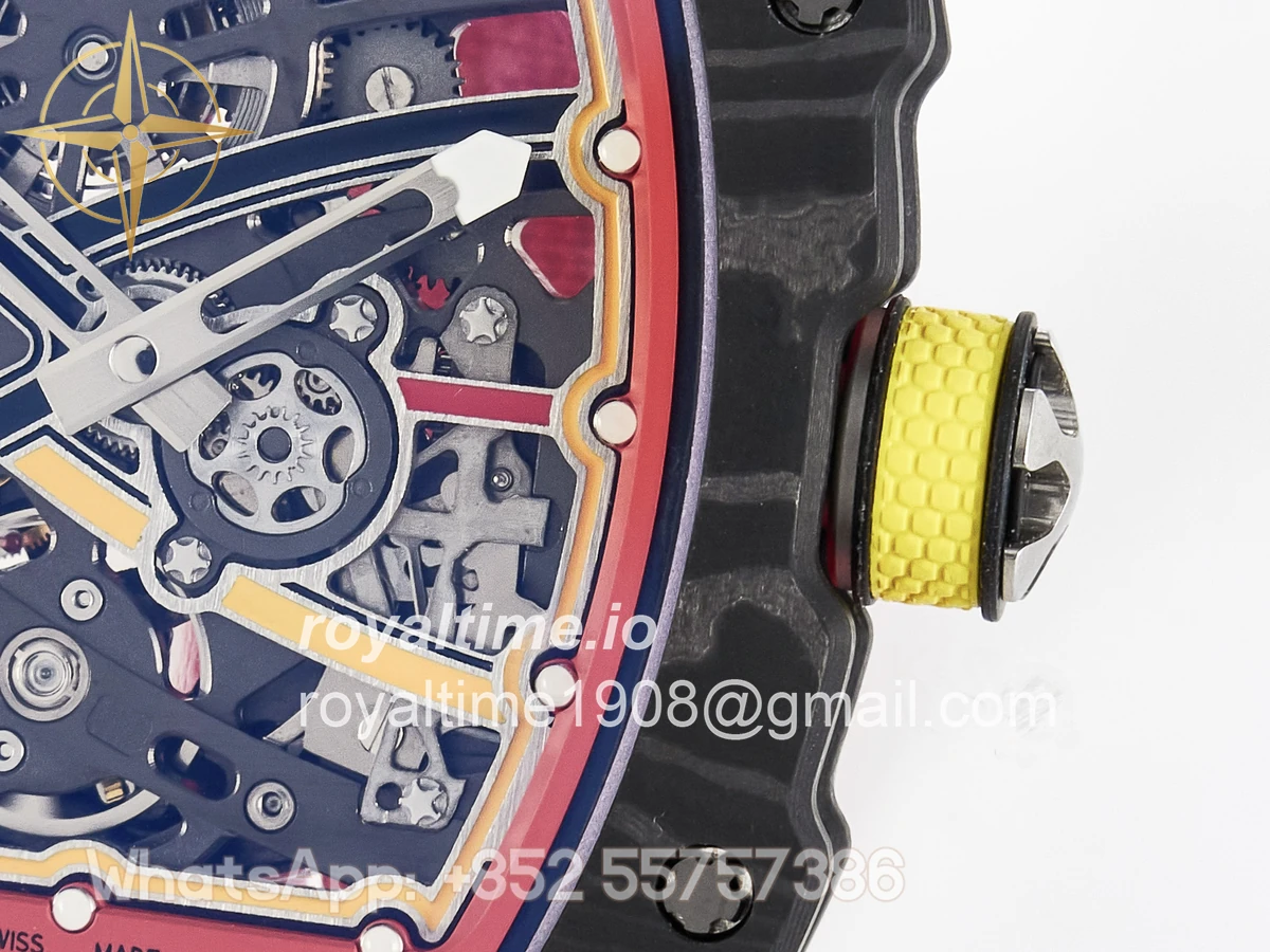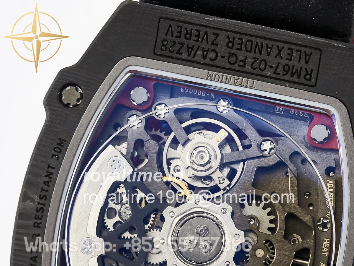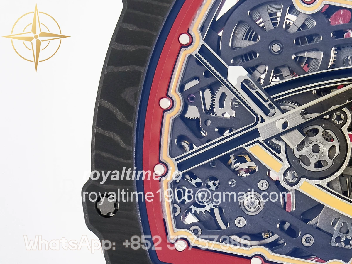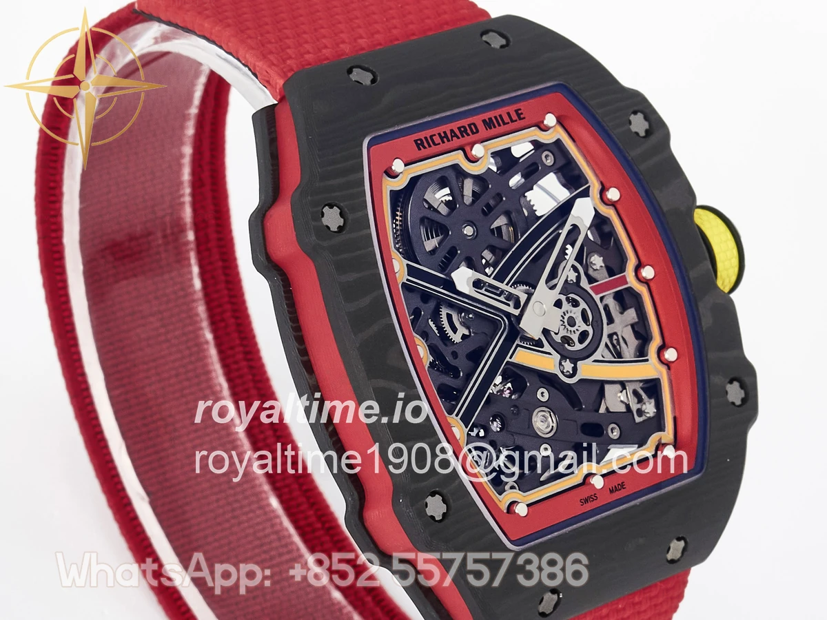 Size 39mm x 9mm Movement Asian modified clone CRMA7 skeleton movement Functions Hours and minutes display Case Black NTPT case Crystal Scratch-proof sapphire crystal with AR coating Dial Skeleton dial Strap Red nylon strap Water resistance >50 Meters