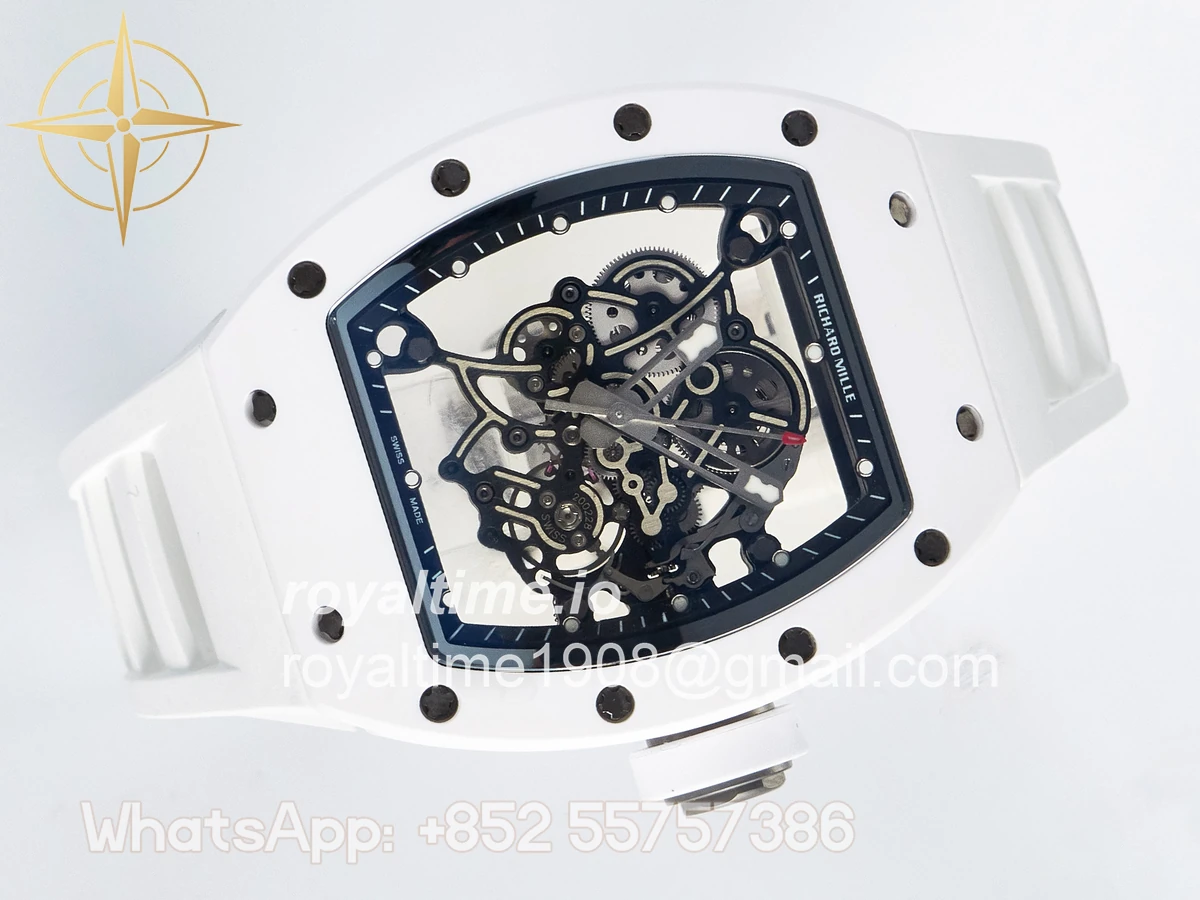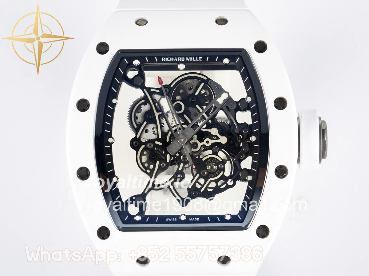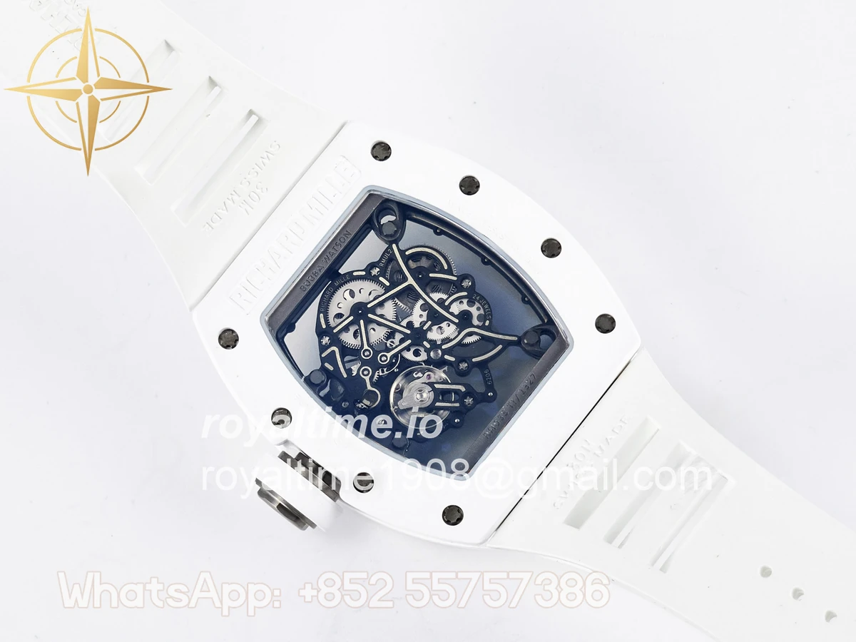 Richard Mille Custom RM055 White Ceramic APSF Black Bezel White Crown on Rubber Strap Custom Vaucher Movement