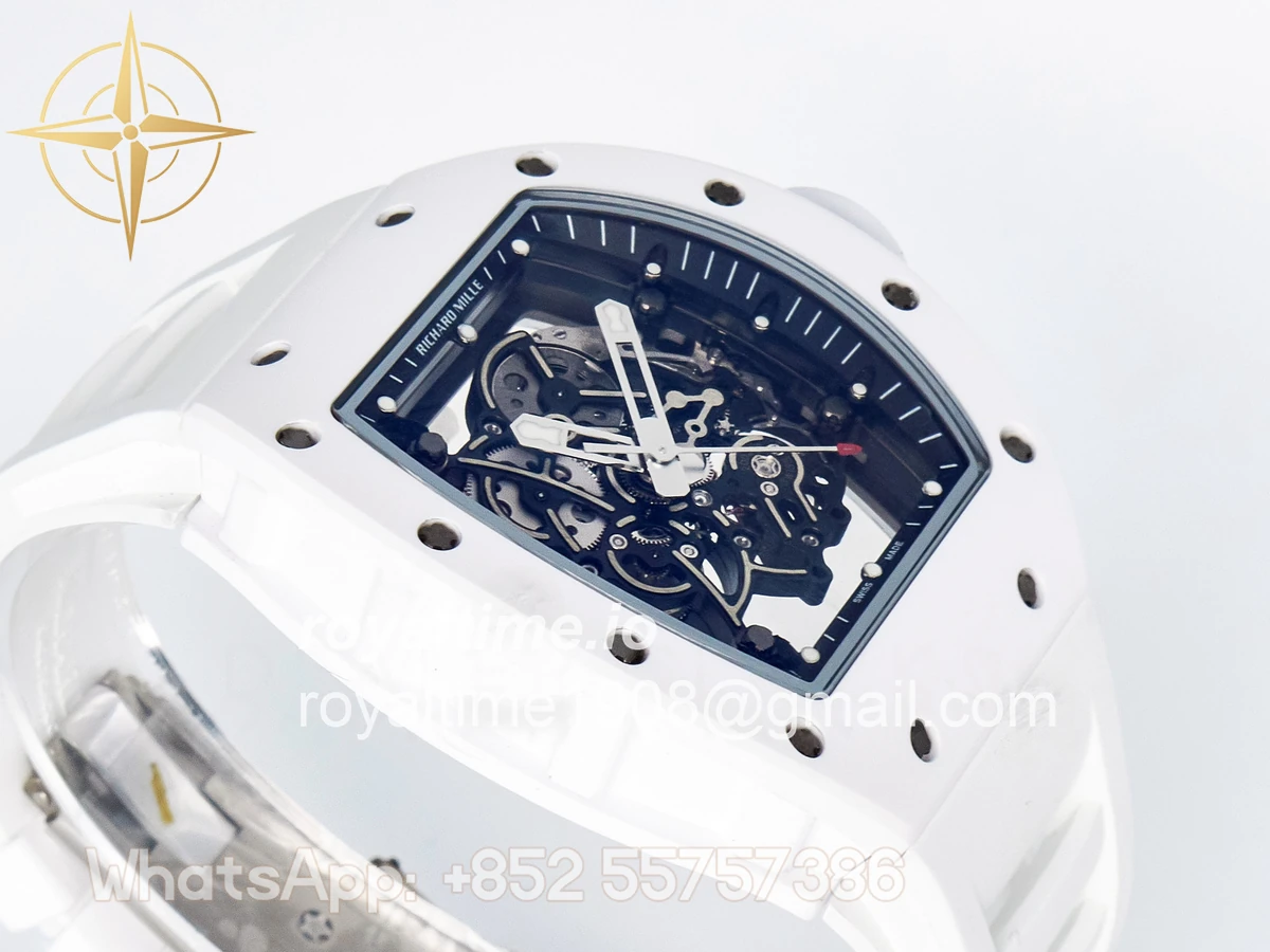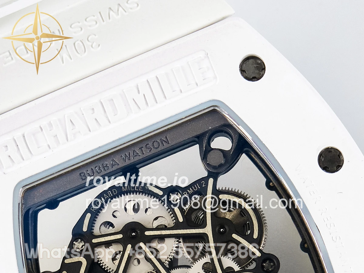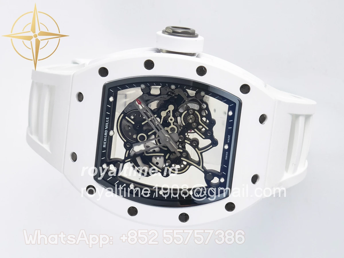 Richard Mille Custom RM055 White Ceramic APSF Black Bezel White Crown on Rubber Strap Custom Vaucher Movement