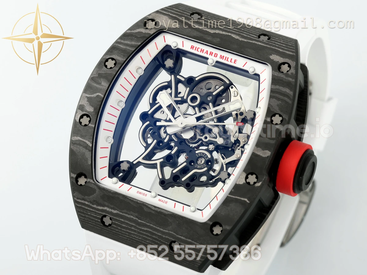 RICHARD MILLE RICHARD MILLE RM055 APSF Ti/NTPT White inner Bezel on White Rubber Strap Super Clone V2 RMUL2