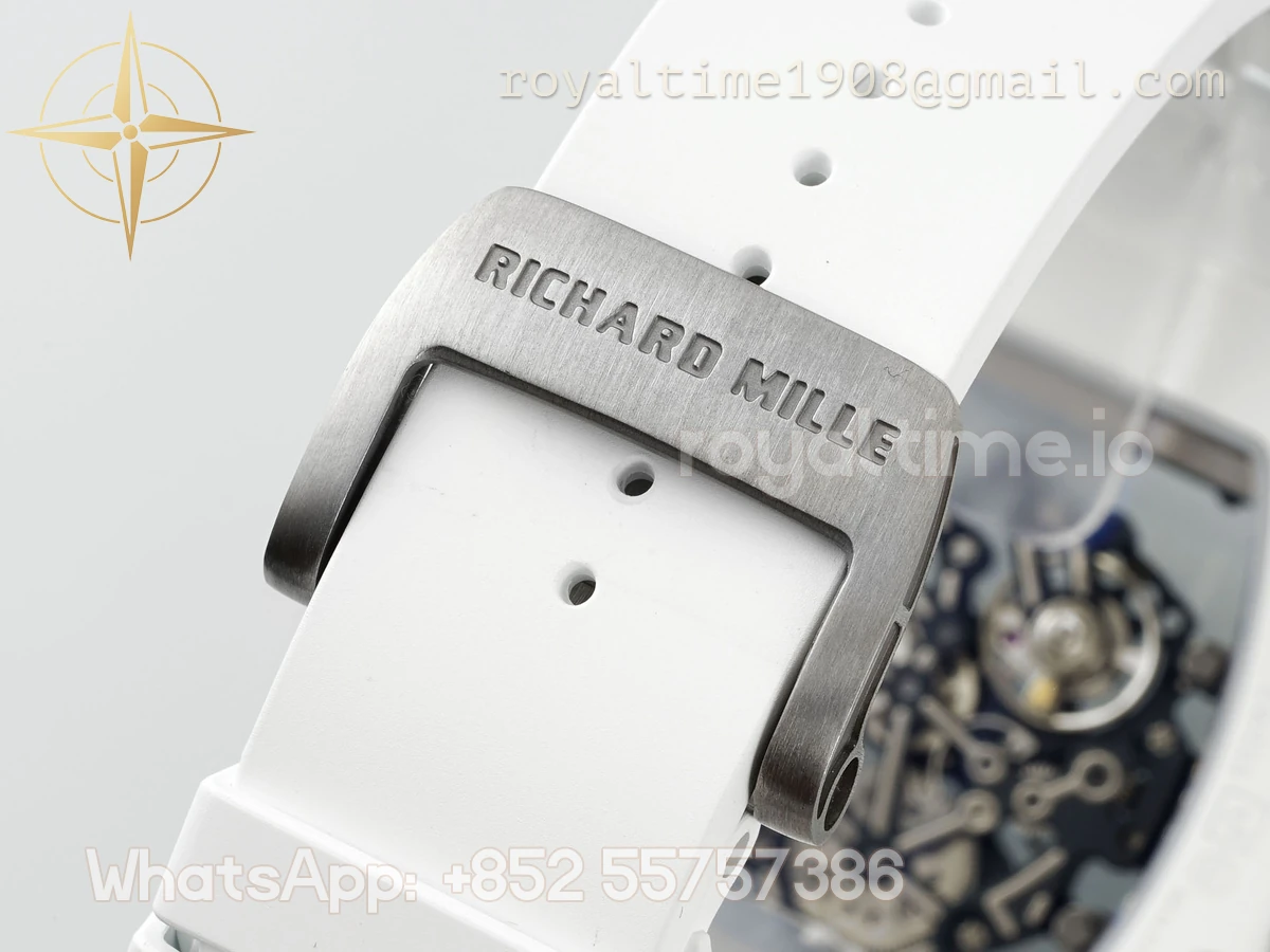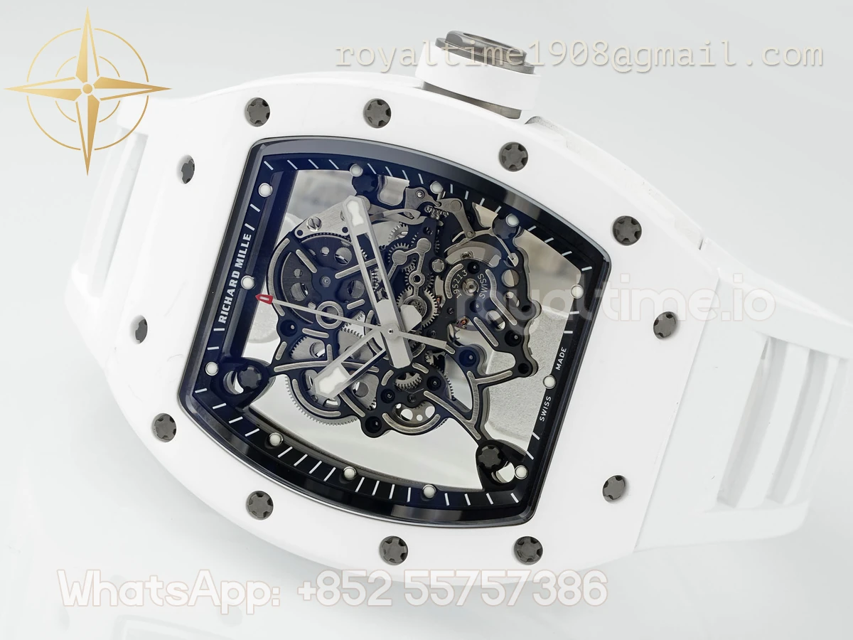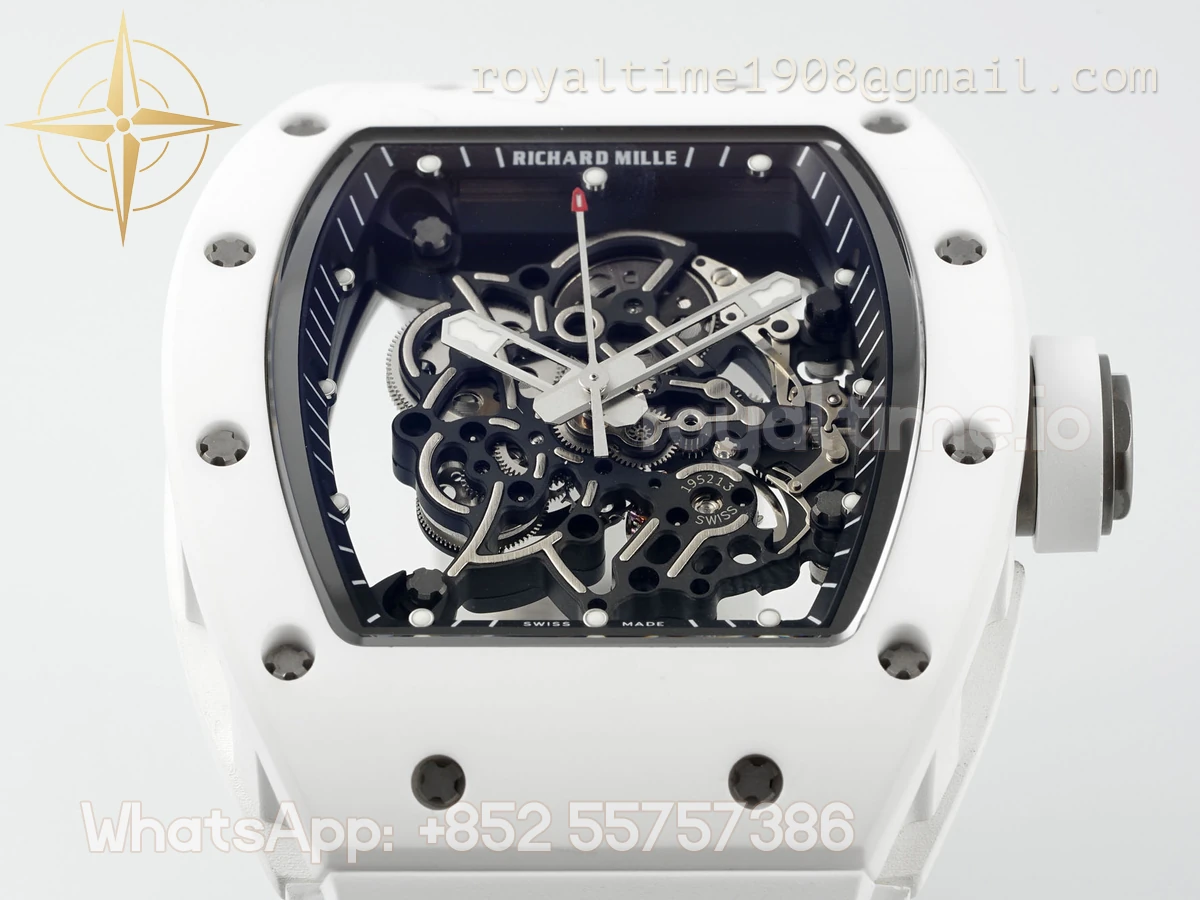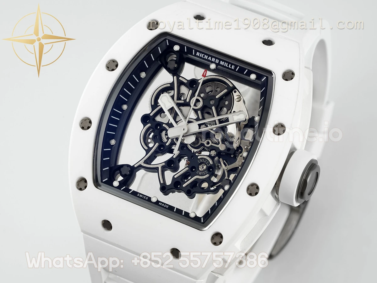 Richard Mille Richard Mille RM055 APSF White Ceramic Black inner Bezel on White Rubber Strap Super Clone V2 RMUL2