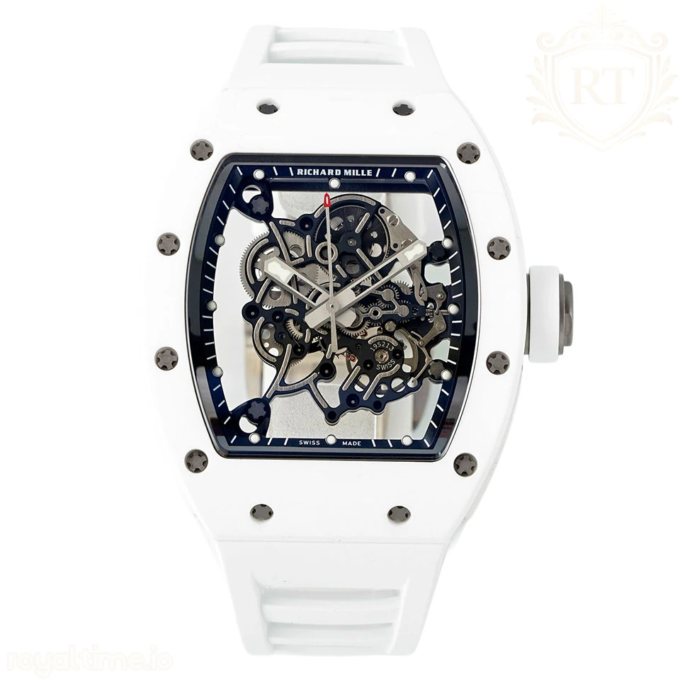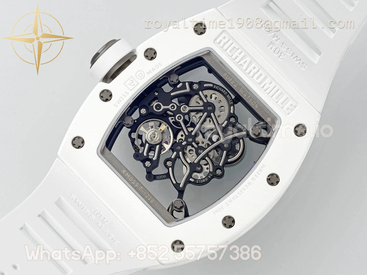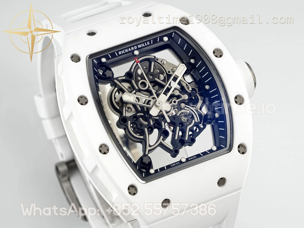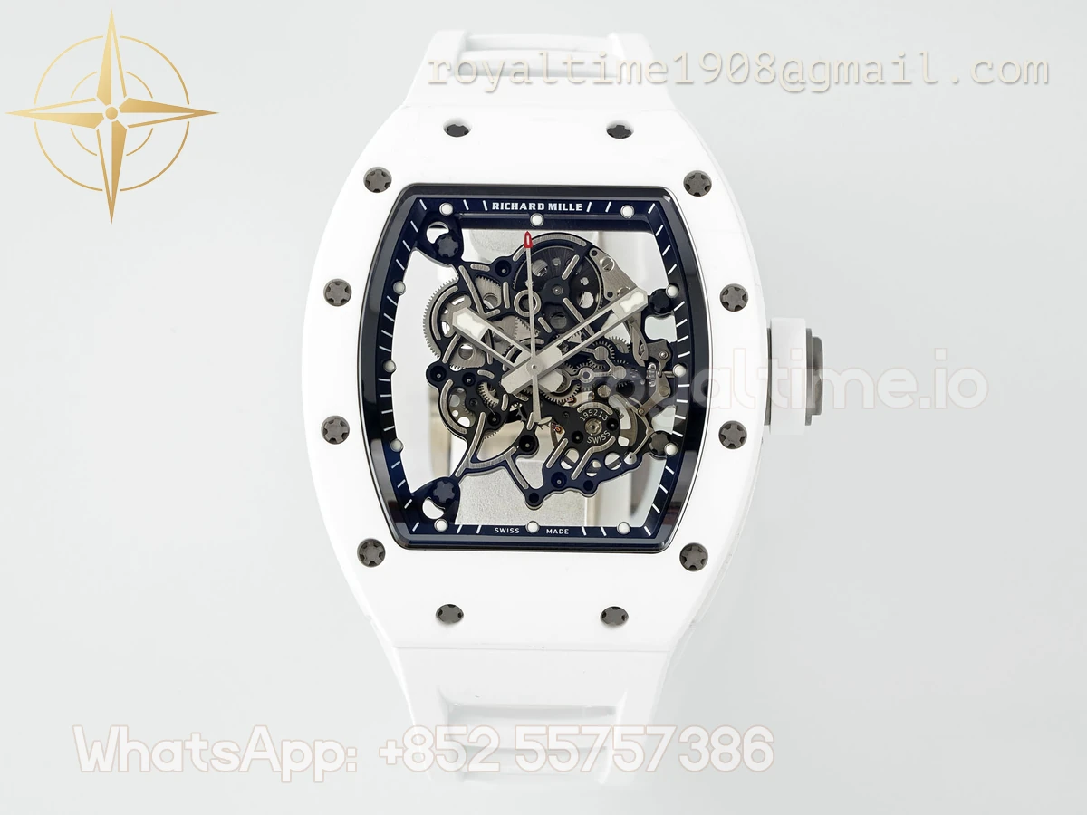 Richard Mille Richard Mille RM055 APSF White Ceramic Black inner Bezel on White Rubber Strap Super Clone V2 RMUL2