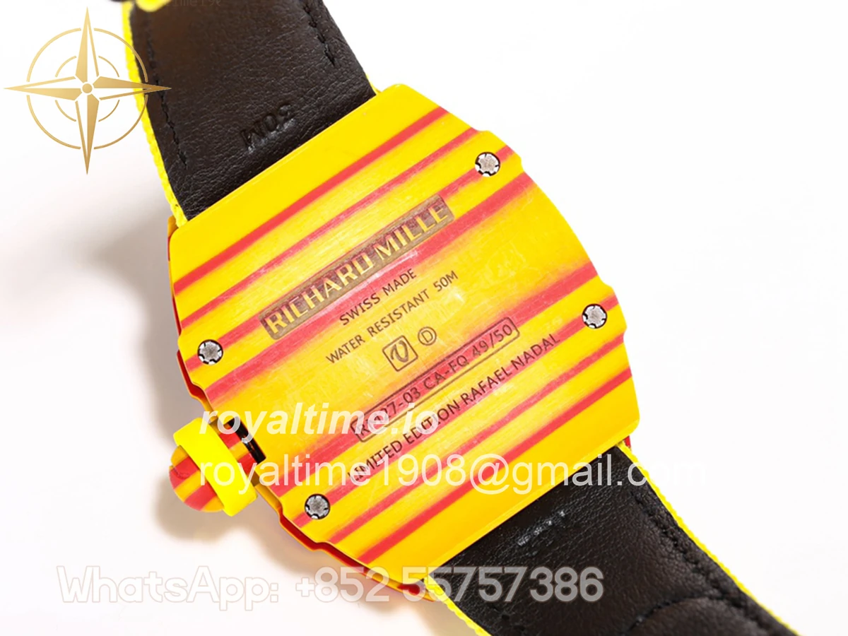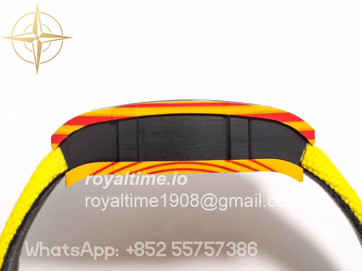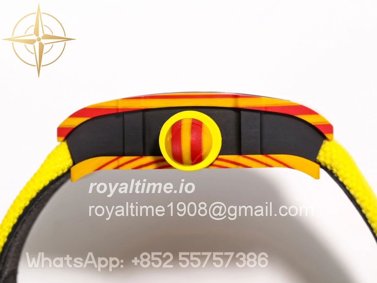 Size: 41mm x 48mm x 13mm Movement: Manual hand-winding tourbillon movement Functions: Hours, minutes and seconds display Case: Quartz TPT case with PVD plated midcase Crystal: Scratch-proof sapphire crystal Dial: Skeleton dial Bezel: Quartz TPT bezel Strap: Yellow velcro strap Water resistance: <20 meters