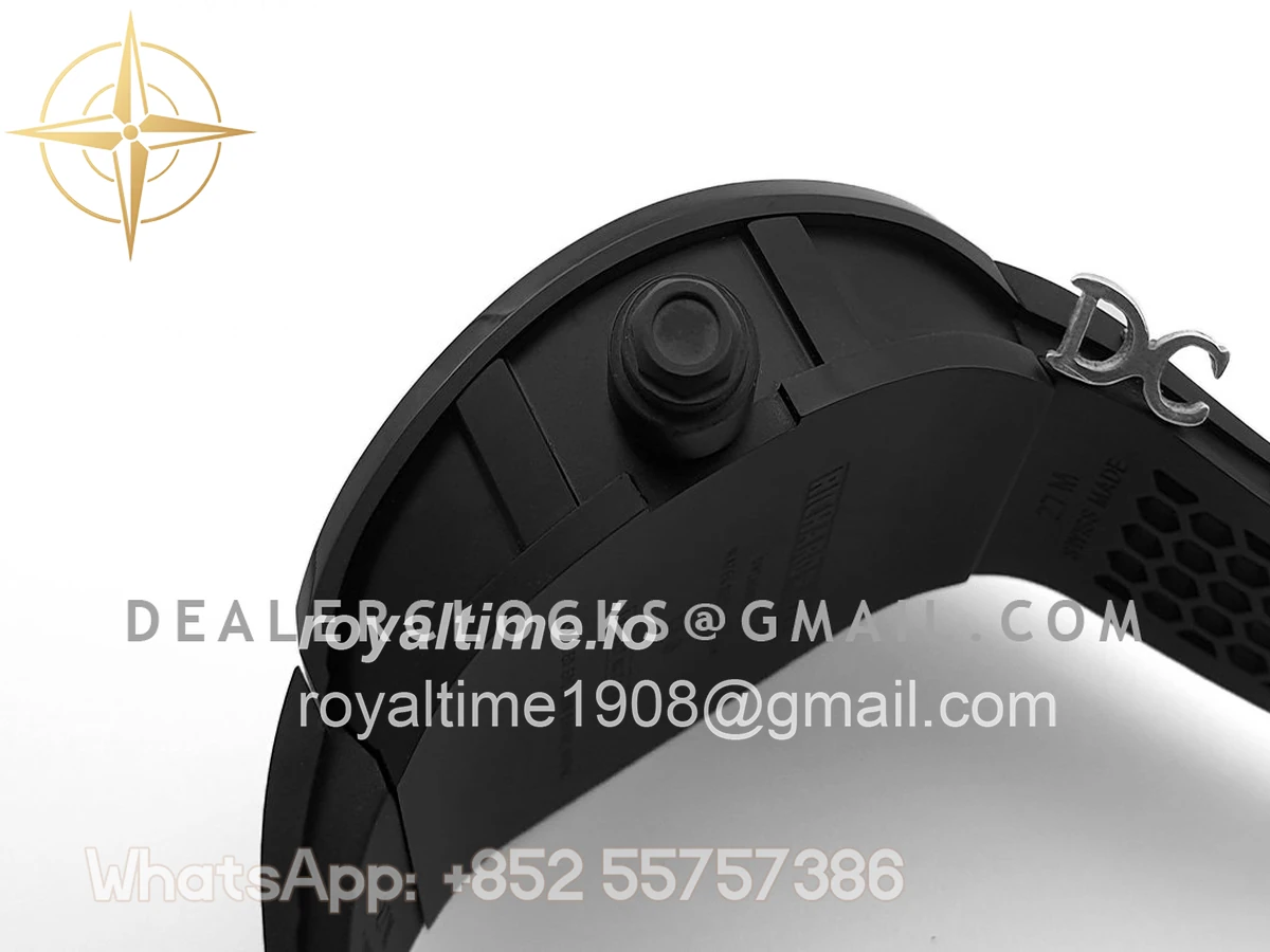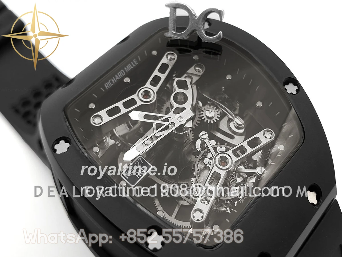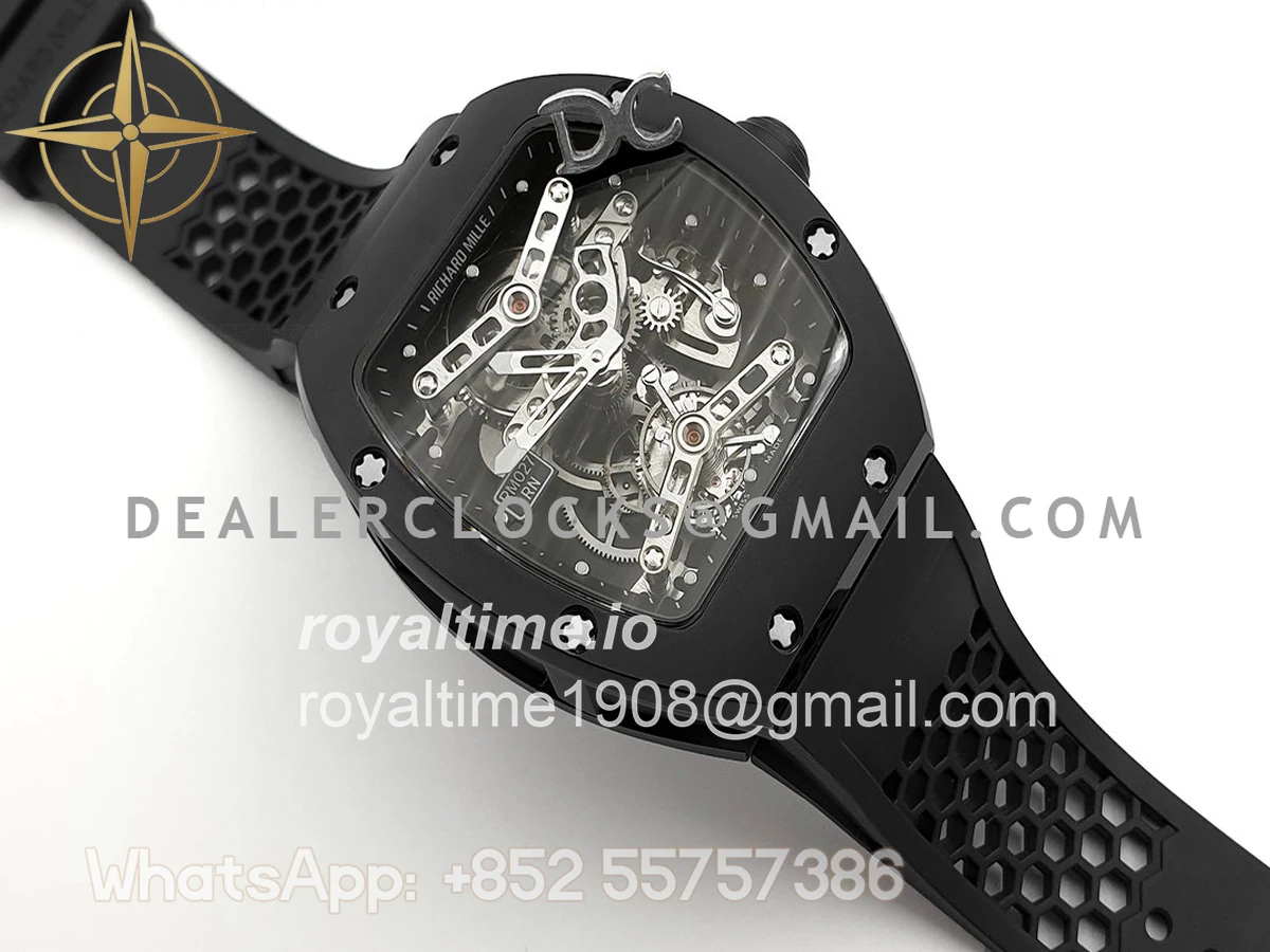 High quality replication of the visually striking Richard Mille RM27 Tourbillon Rafael Nadal on black rubber strap. Size: 51mm x 17.5mm x 30mm Movement: Asian hand winding tourbillon movement Functions: Hours and minutes display Case: PVD plated stainless steel case Crystal: Scratch-proof sapphire crystal Dial: Skeleton dial Bezel: PVD plated stainless steel bezel Strap: Black rubber strap with tang buckle Water resistance: >20 meters