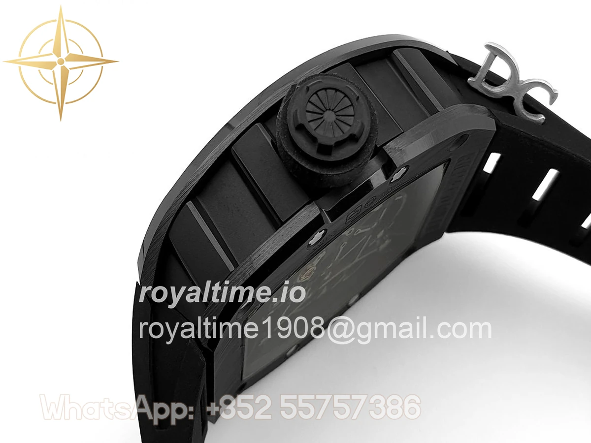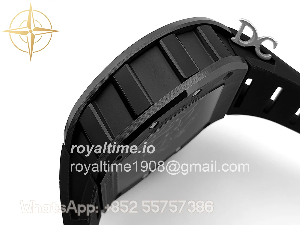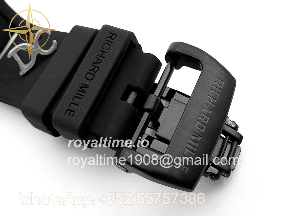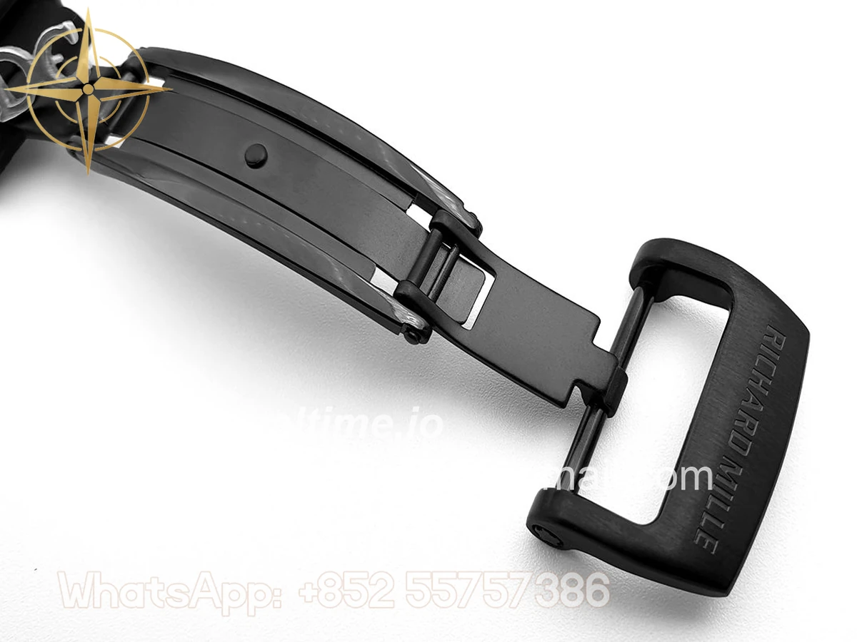 Quality replication of the Richard Mille RM055 Black Bubba Watson. Size: 43mm x 51mm x 18mm Movement: Japanese MIYOTA 9015 Automatic Movement Functions: Hours, minutes and seconds display Case: PVD plated solid 316L stainless steel case Crystal: Scratch-proof sapphire crystal Dial: Skeleton dial Bezel: PVD plated solid 316L stainless steel bezel Strap: Black rubber strap Clasp: Deployant clasp Water resistance: >50 Meters
