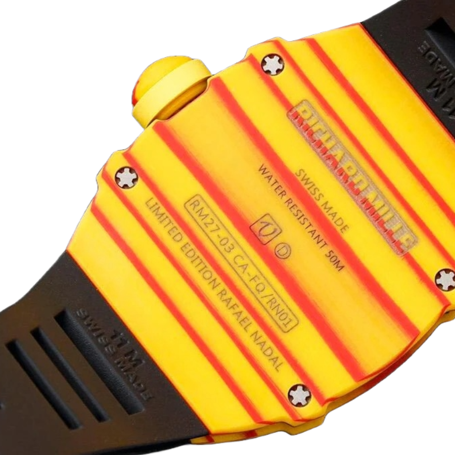 Water-resistant to 30 meters (3 ATM), this watch has passed standard water pressure tests, though it is not recommended for swimming—just like its authentic counterpart. Whether you’re a collector, a fan of Rafael Nadal, or someone who appreciates bold, boundary-pushing design, the Richard Mille RM27-03 Tourbillon Replica stands as a fusion of elite sport and sophisticated horology.