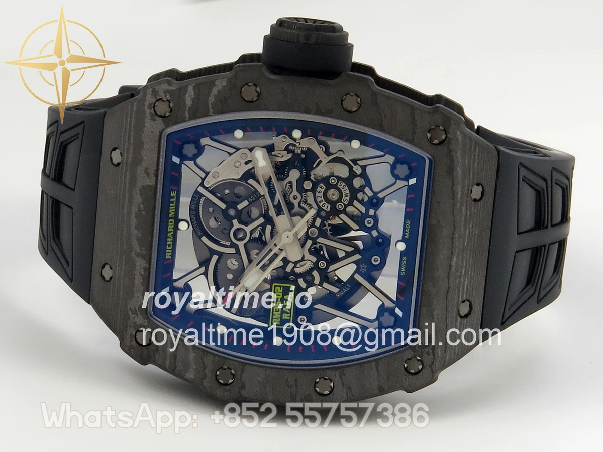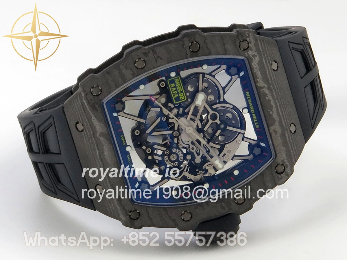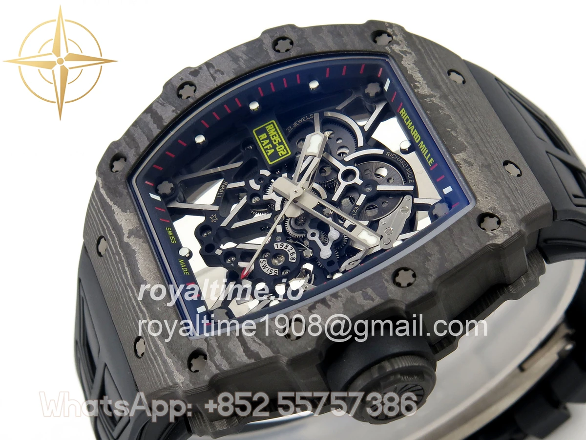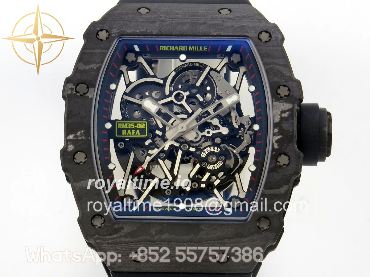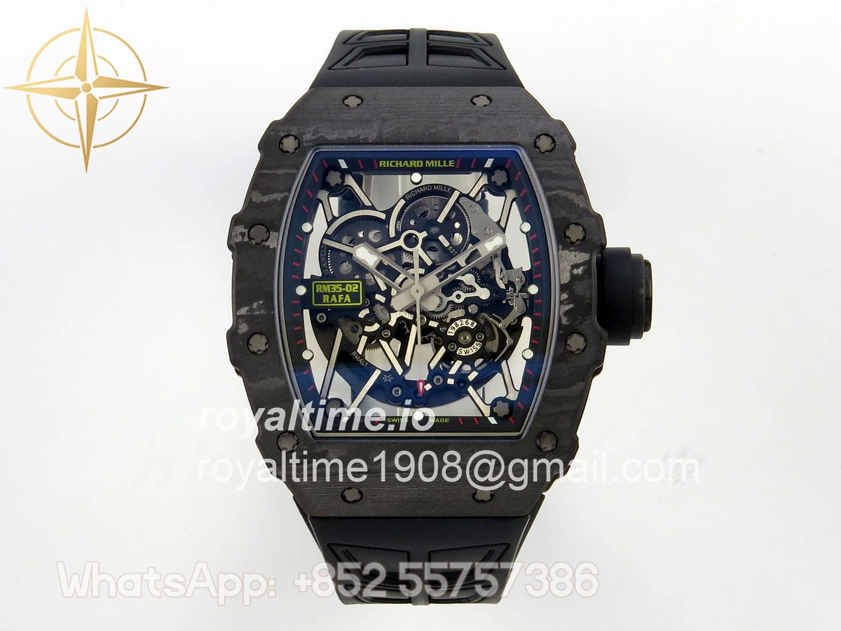 Size 44.5mm x 50mm x 13.2mm (exactly the same as genuine) Movement Free Sprung asian custom made super clone RMAL1 automatic movement, same as genuine Functions Hours, minutes and seconds display Case Black NTPT case with unique pattern Crystal Scratch-proof sapphire crystal with AR coating Dial Skeleton dial Bezel Black NTPT carbon bezel Strap Black rubber strap Clasp Deployant clasp Water resistance >50 Meters Please be informed that this rating is merely a guide. We do do not advise submerging or immersing any replica watch in water unless you have had your watch water-proofed by a professional. We do not guarantee the product’s water-resistance and as such we do not refund, offer store credit, exchange or do a free repair on any watch that has water damage.