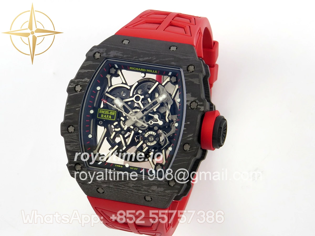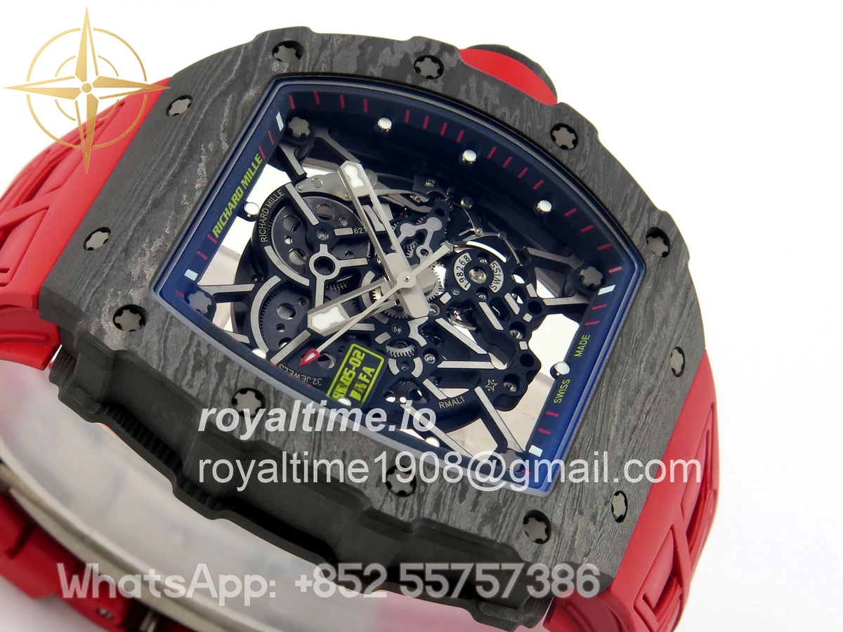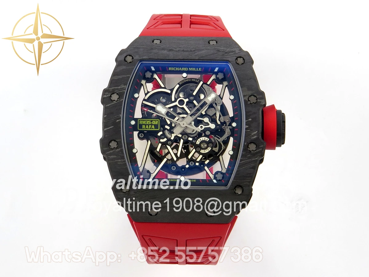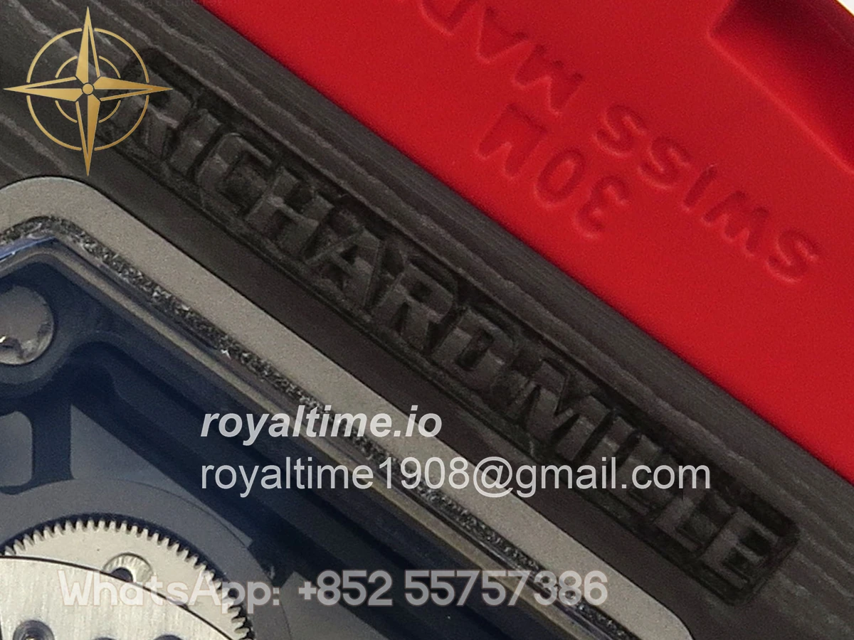 Size 44.5mm x 50mm x 13.2mm (exactly the same as genuine) Movement Free Sprung asian custom made super clone RMAL1 automatic movement, same as genuine Functions Hours, minutes and seconds display Case Black NTPT case with unique pattern Crystal Scratch-proof sapphire crystal with AR coating Dial Skeleton dial Bezel Black NTPT carbon bezel Strap Red rubber strap Clasp Deployant clasp Water resistance >50 Meters Please be informed that this rating is merely a guide. We do do not advise submerging or immersing any replica watch in water unless you have had your watch water-proofed by a professional. We do not guarantee the product’s water-resistance and as such we do not refund, offer store credit, exchange or do a free repair on any watch that has water damage.