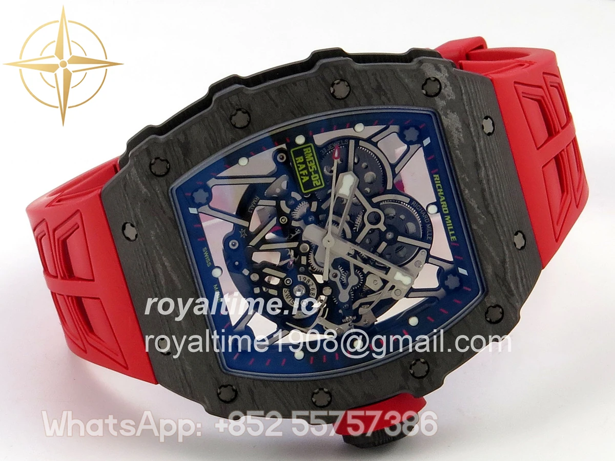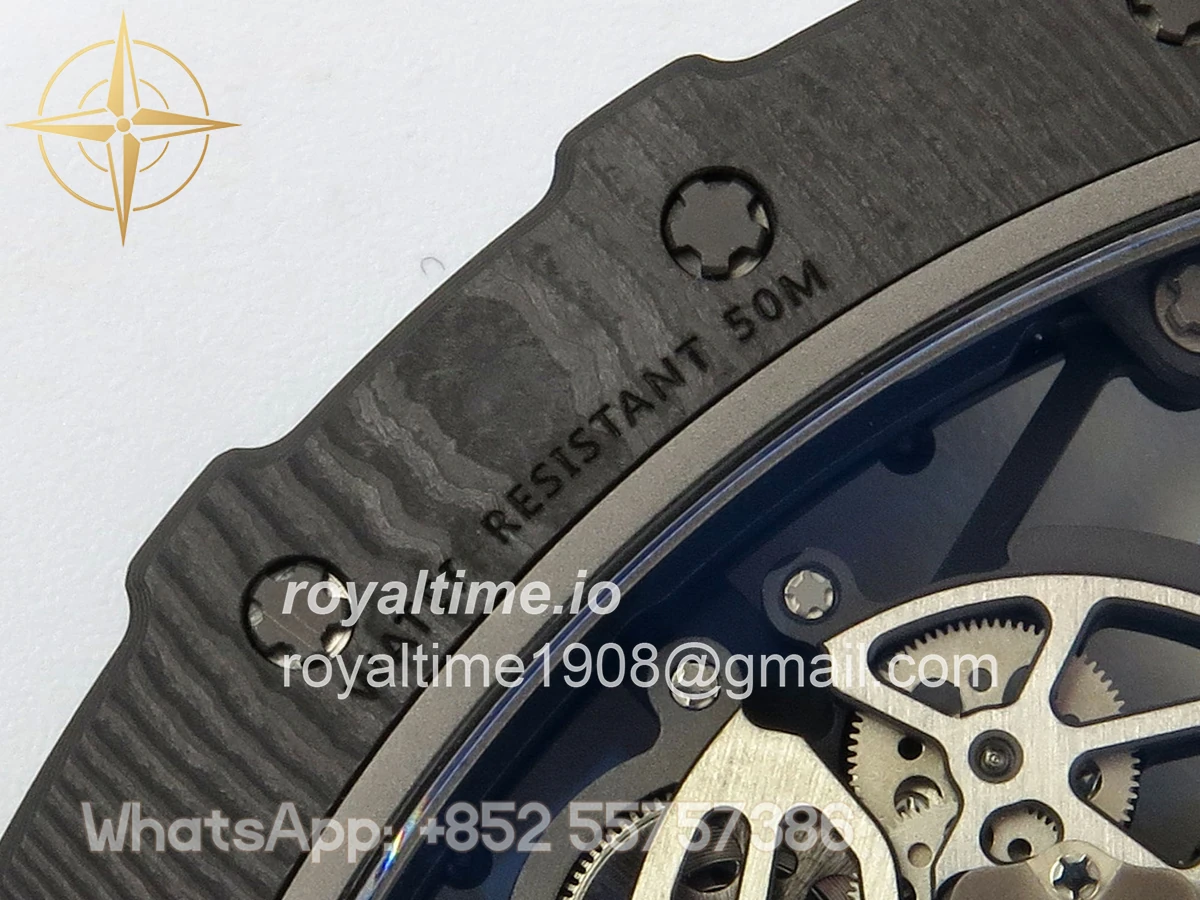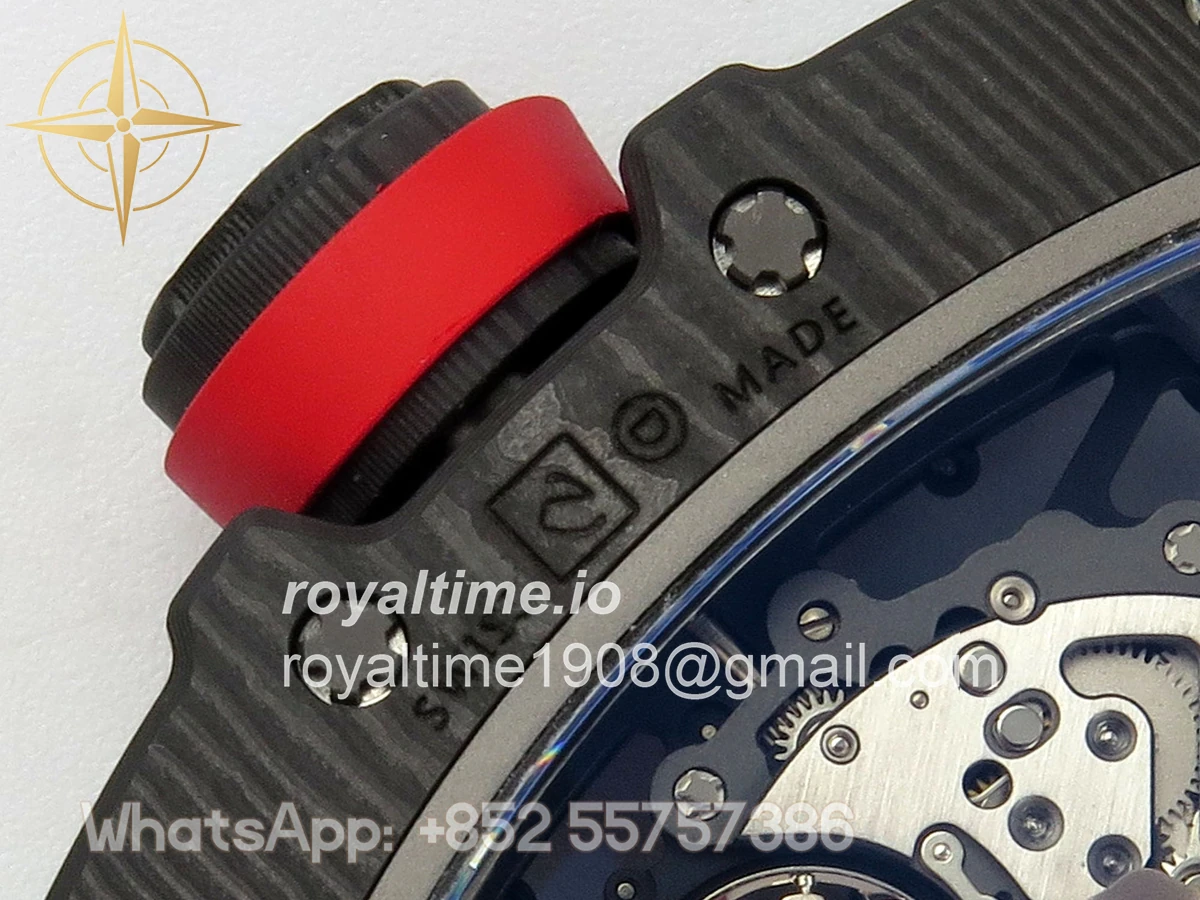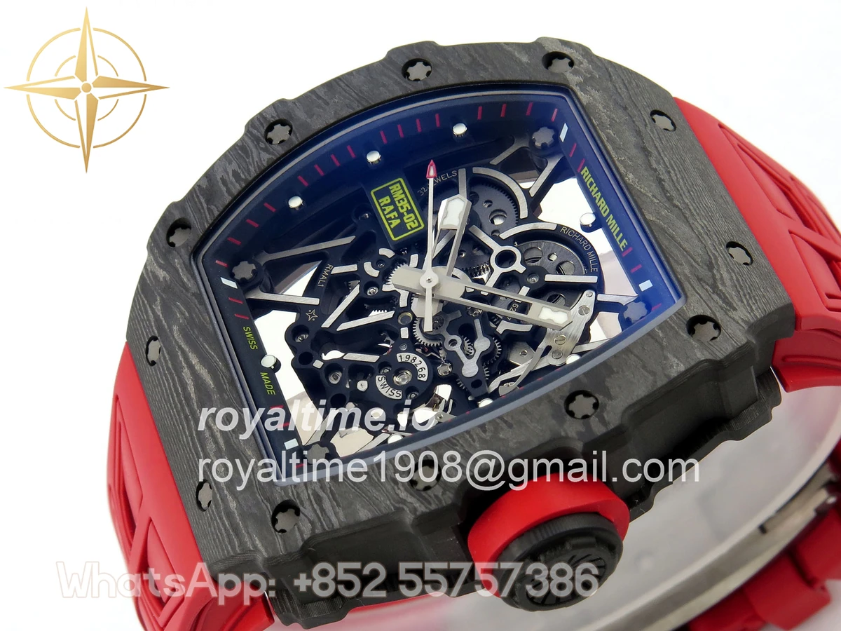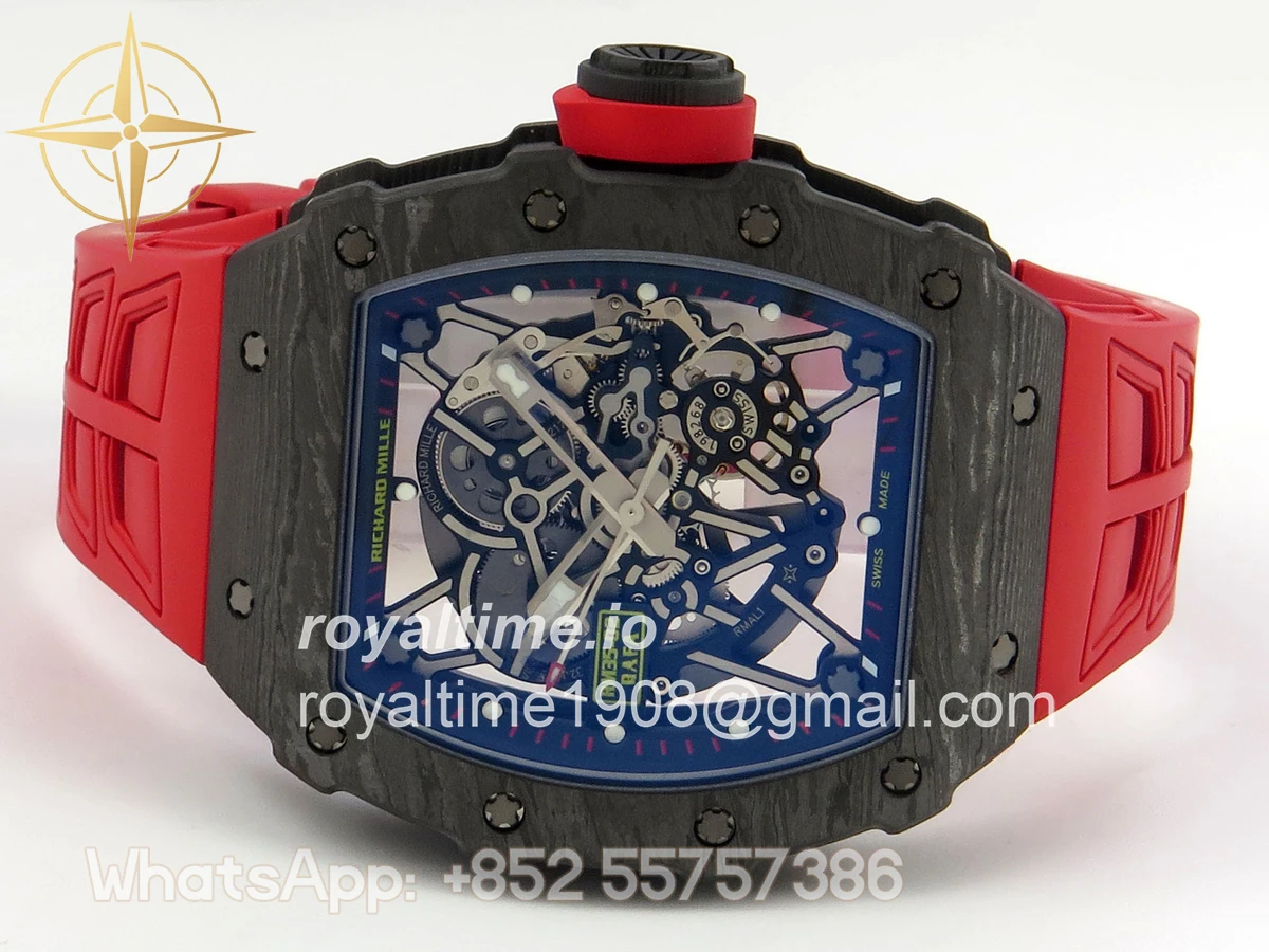 Size 44.5mm x 50mm x 13.2mm (exactly the same as genuine) Movement Free Sprung asian custom made super clone RMAL1 automatic movement, same as genuine Functions Hours, minutes and seconds display Case Black NTPT case with unique pattern Crystal Scratch-proof sapphire crystal with AR coating Dial Skeleton dial Bezel Black NTPT carbon bezel Strap Red rubber strap Clasp Deployant clasp Water resistance >50 Meters Please be informed that this rating is merely a guide. We do do not advise submerging or immersing any replica watch in water unless you have had your watch water-proofed by a professional. We do not guarantee the product’s water-resistance and as such we do not refund, offer store credit, exchange or do a free repair on any watch that has water damage.