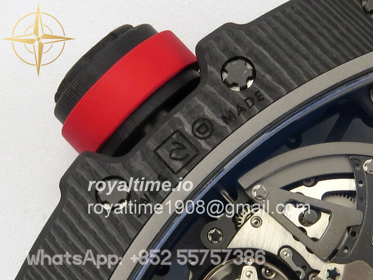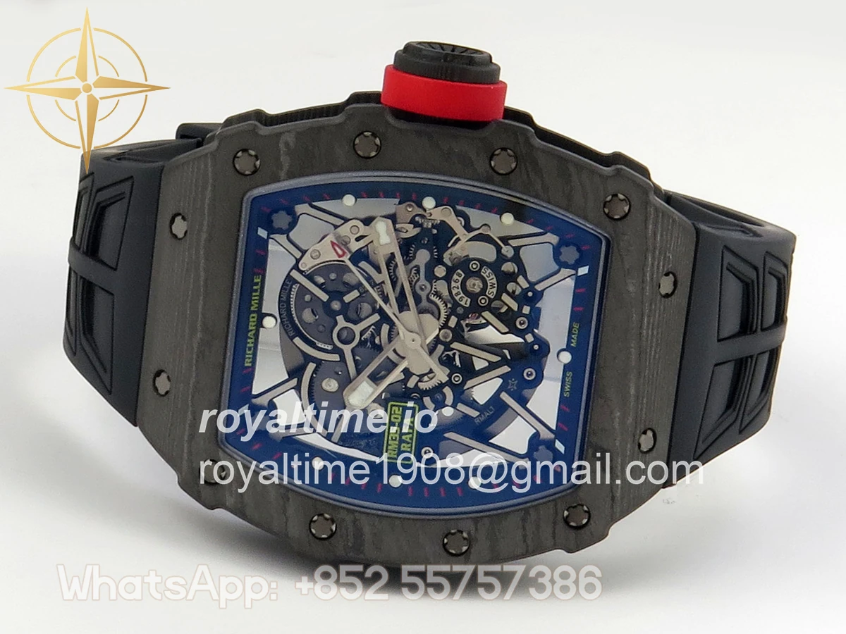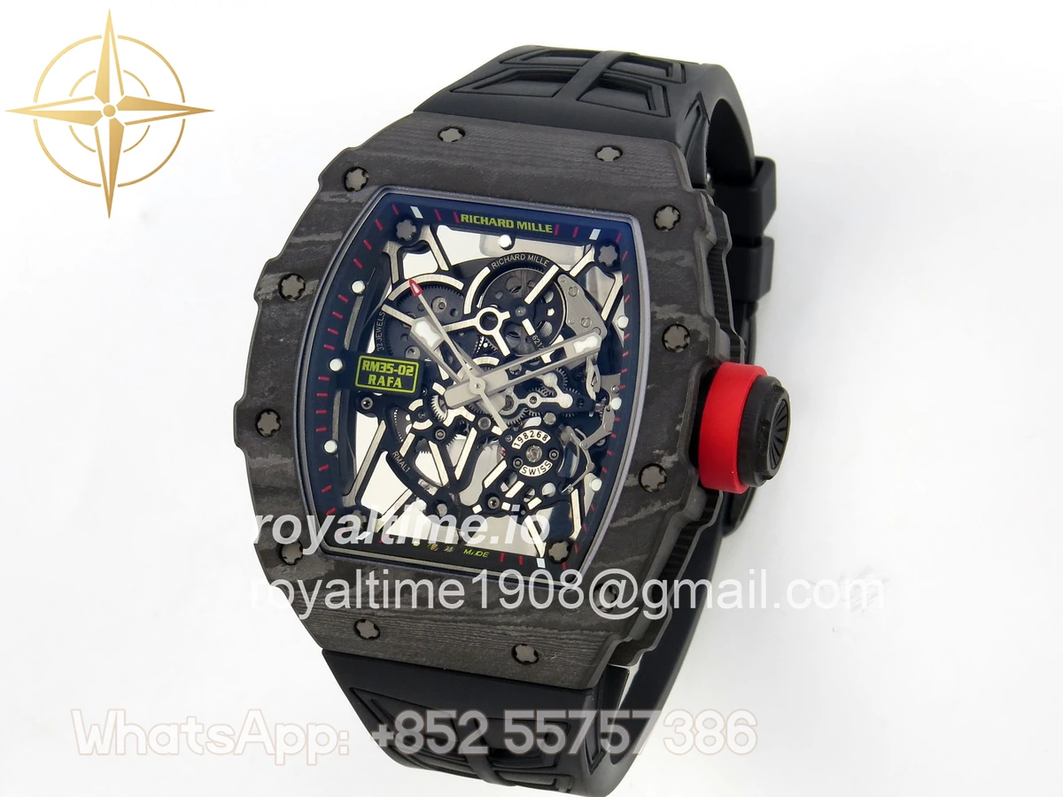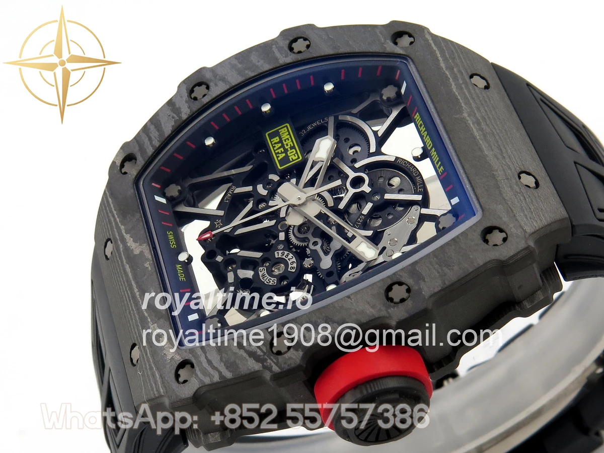 Size 44.5mm x 50mm x 13.2mm (exactly the same as genuine) Movement Free Sprung asian custom made super clone RMAL1 automatic movement, same as genuine Functions Hours, minutes and seconds display Case Black NTPT case with unique pattern Crystal Scratch-proof sapphire crystal with AR coating Dial Skeleton dial Bezel Black NTPT carbon bezel Strap Black rubber strap Clasp Deployant clasp Water resistance >50 Meters Please be informed that this rating is merely a guide. We do do not advise submerging or immersing any replica watch in water unless you have had your watch water-proofed by a professional. We do not guarantee the product’s water-resistance and as such we do not refund, offer store credit, exchange or do a free repair on any watch that has water damage.