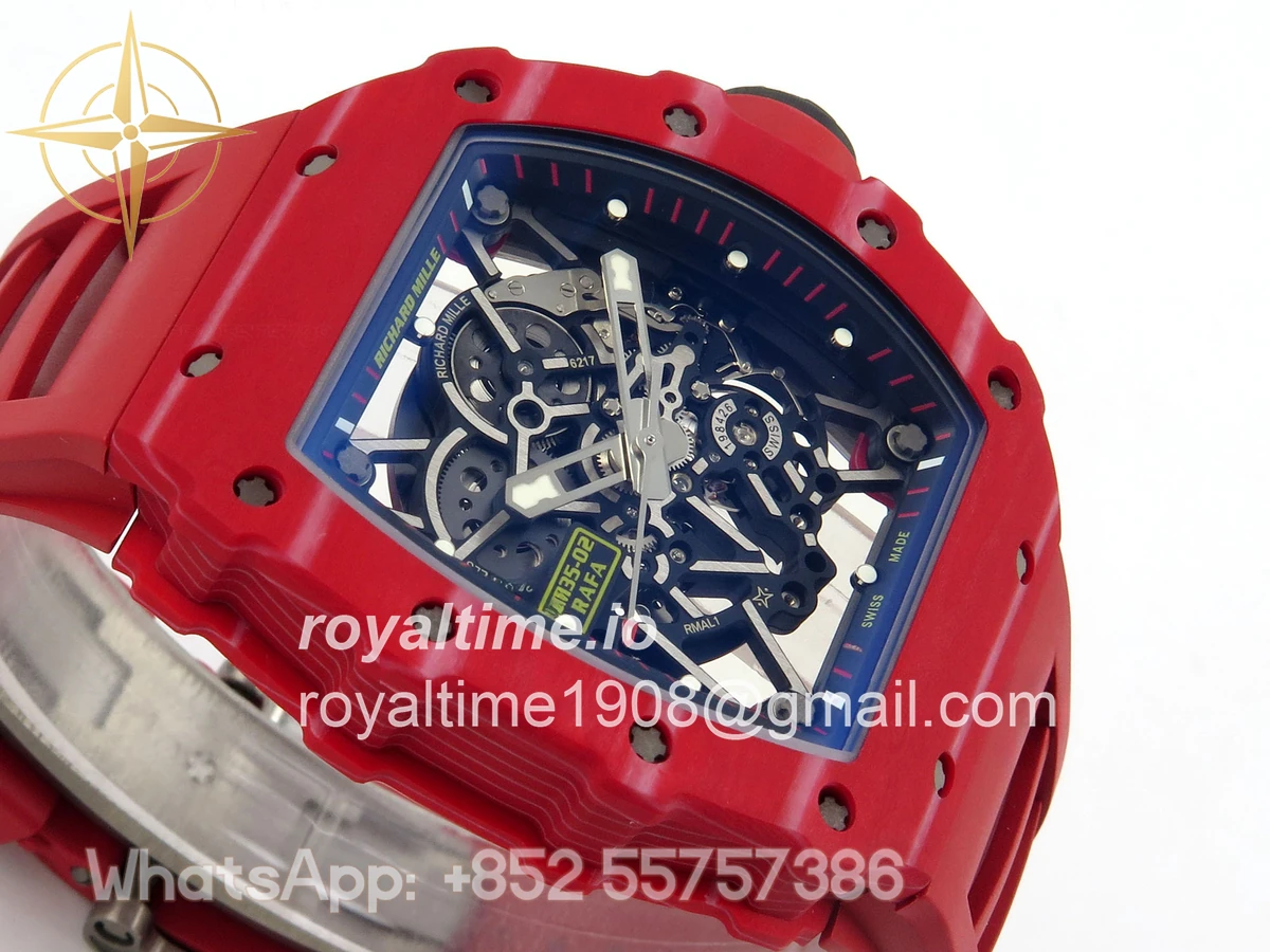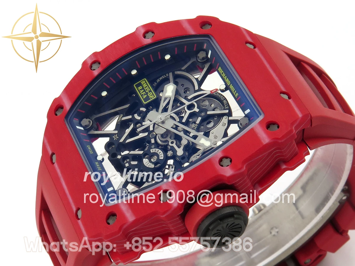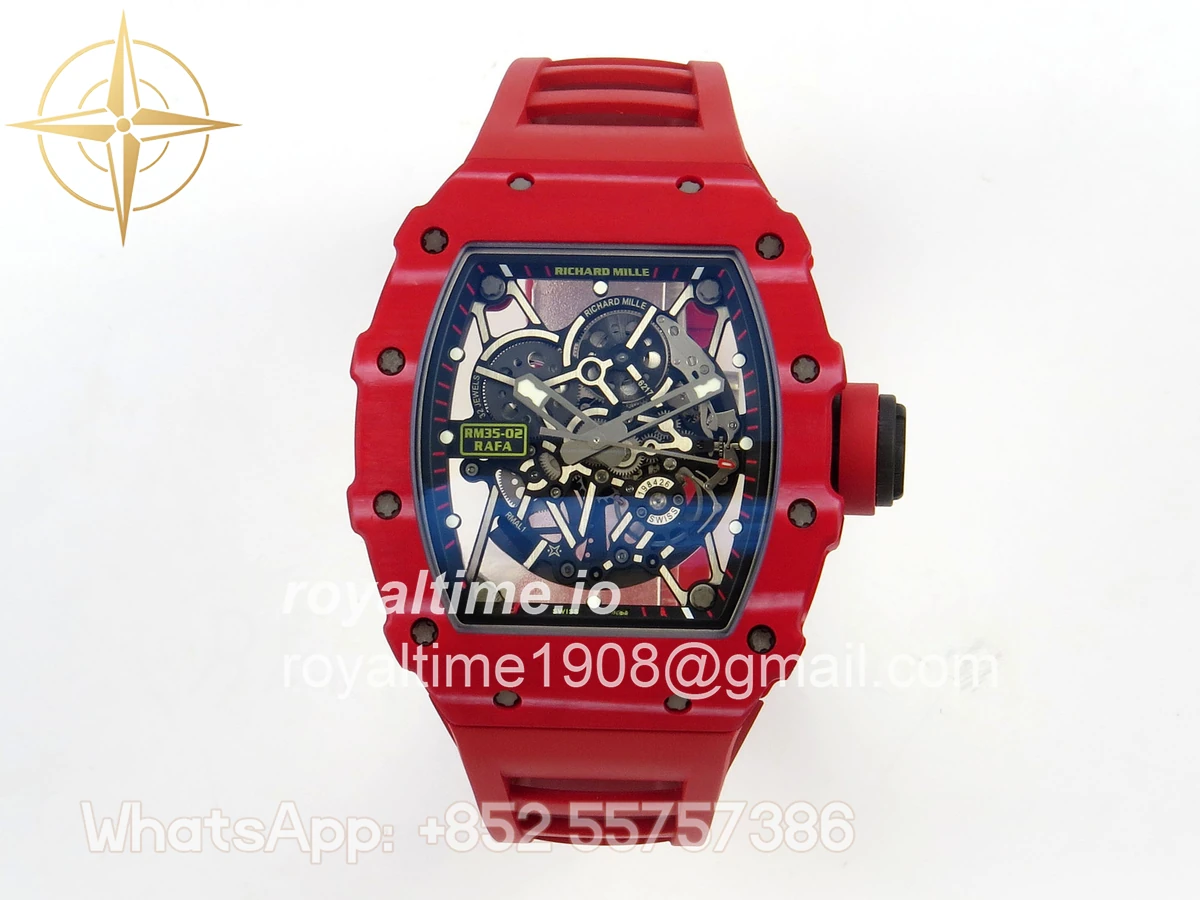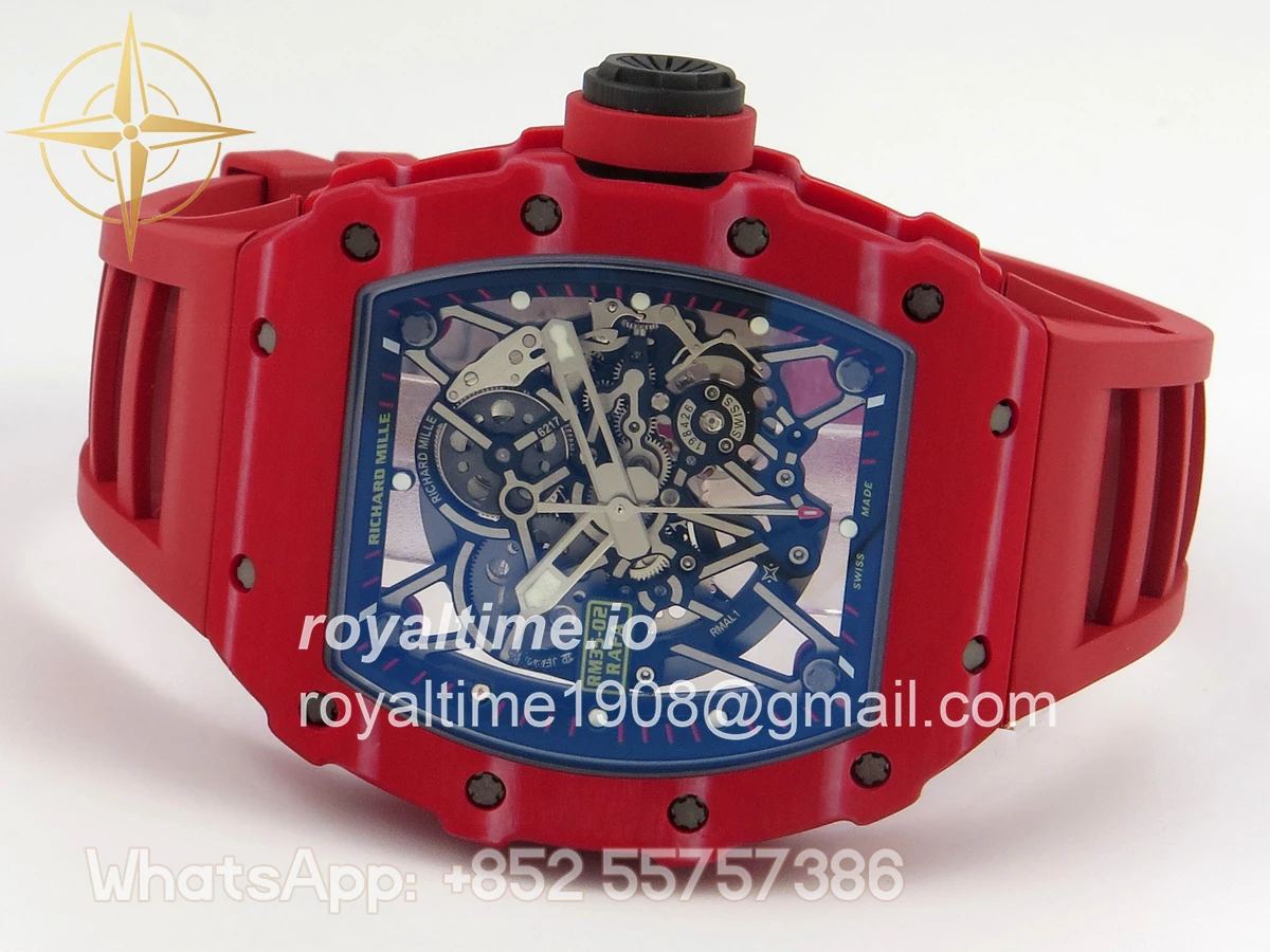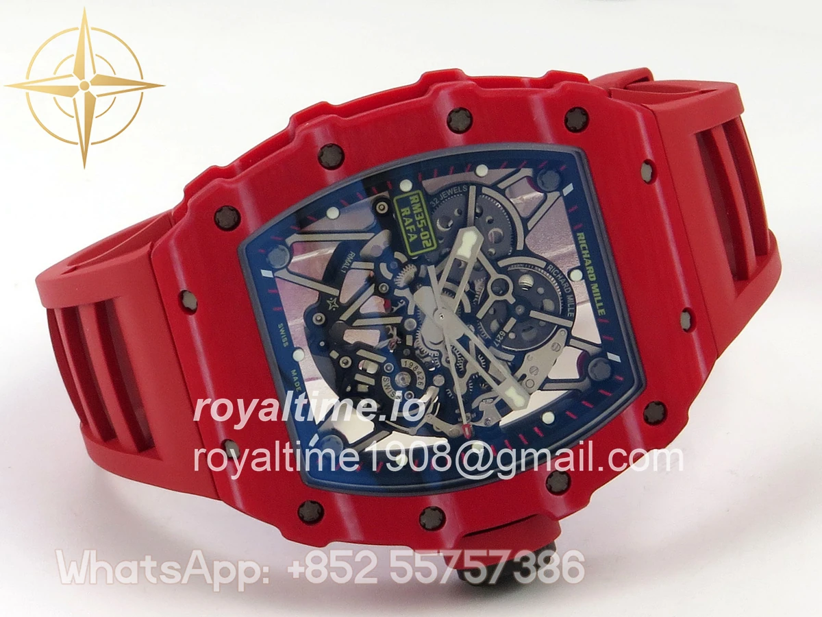 Size 44.5mm x 50mm x 13.2mm (exactly the same as genuine) Movement Asian super clone RMAL1 skeleton movement, the best asian RMAL1 movement at the moment, same looking as genuine. Functions Hours, minutes and seconds display Case 1:1 made real NTPT material bezel, case crown and caseback, not PVD plated or metals. The screws and other parts are interchangeable with genuine watch part. Crystal Super clear scratch-proof sapphire crystal with correct color purple AR coating, same shape and size as genuine watch, can be replaced with genuine watch parts. Dial Skeleton dial Bezel Real NTPT carbon bezel with glossy finish, unique pattern on each bezel. The NTPT texture reflaction is same as genuine. Strap High quality red rubber strap, same quality as genuine strap, interchangeable with genuine watch strap Clasp Super high quality deployment clasp, almost same as genuine clasp Water resistance >50 Meters Please be informed that this rating is merely a guide. We do do not advise submerging or immersing any replica watch in water unless you have had your watch water-proofed by a professional. We do not guarantee the product’s water-resistance and as such we do not refund, offer store credit, exchange or do a free repair on any watch that has water damage.