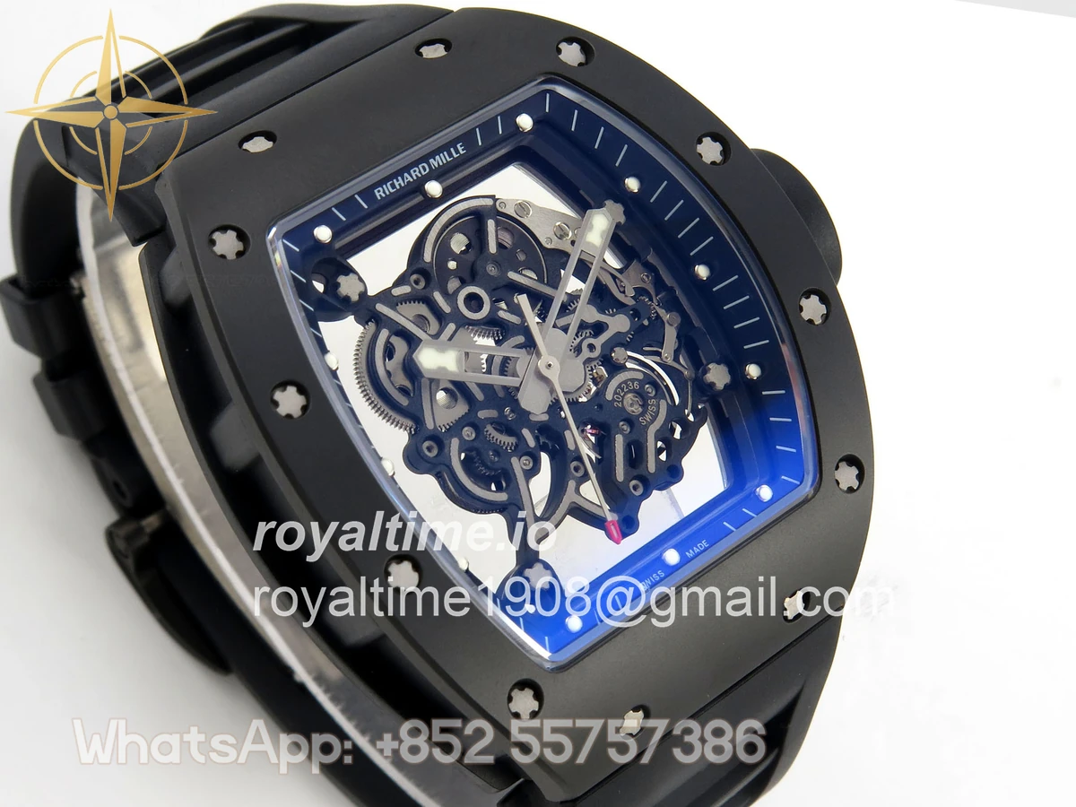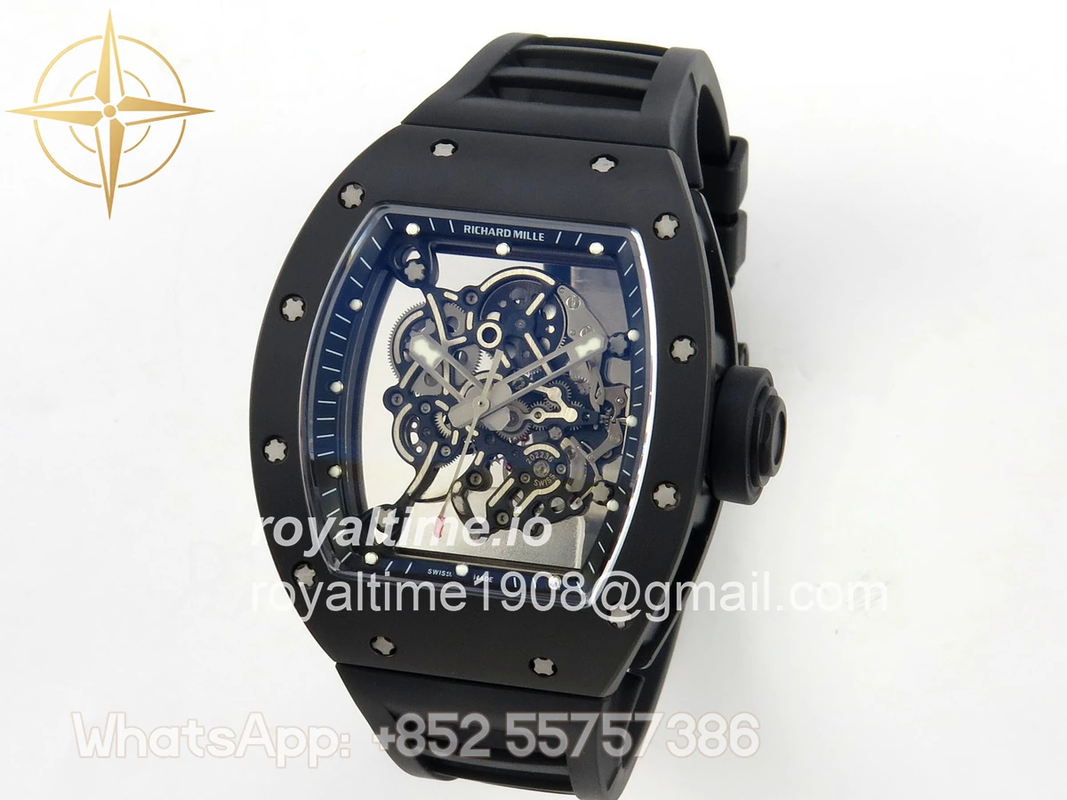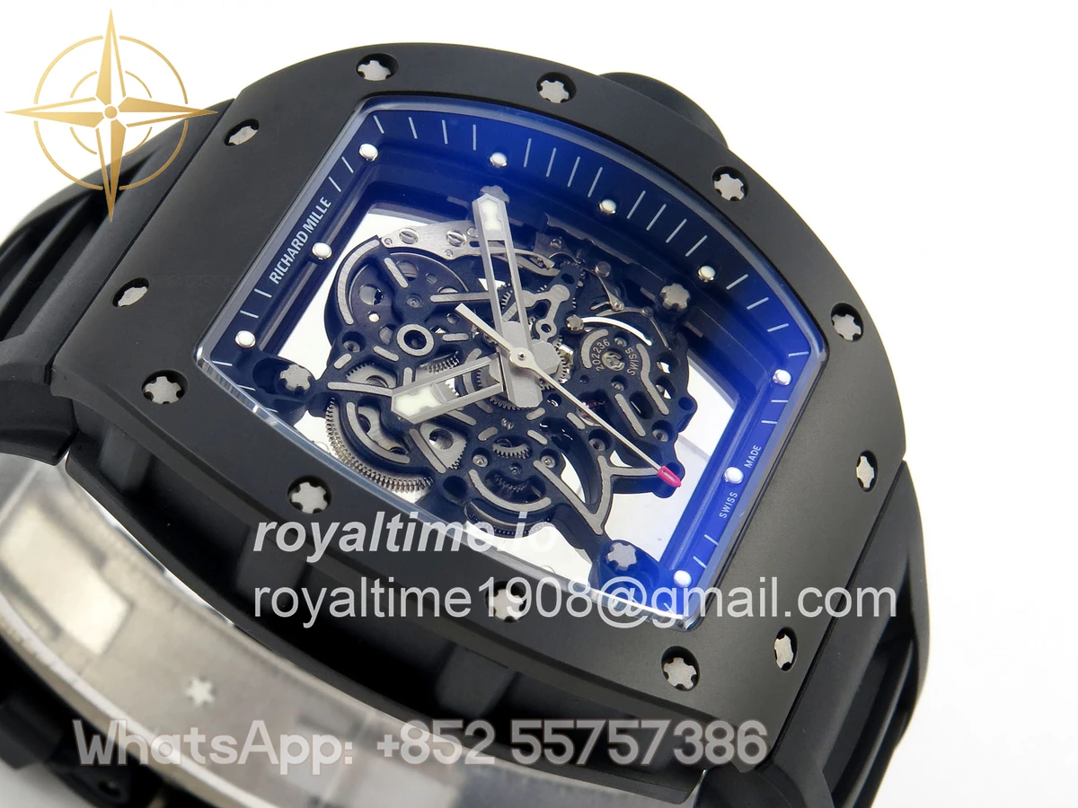Richard Mille RM055 Black Ceramic MLF Black/White Inner Bezel on Black Rubber Strap RMUL2 V2 (Brushed Ribs)