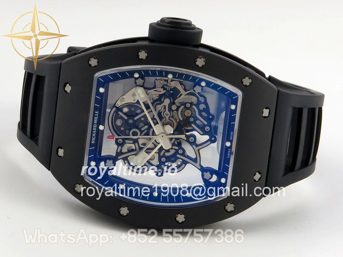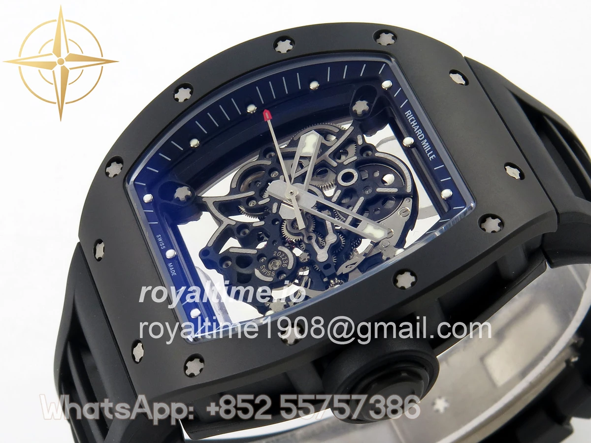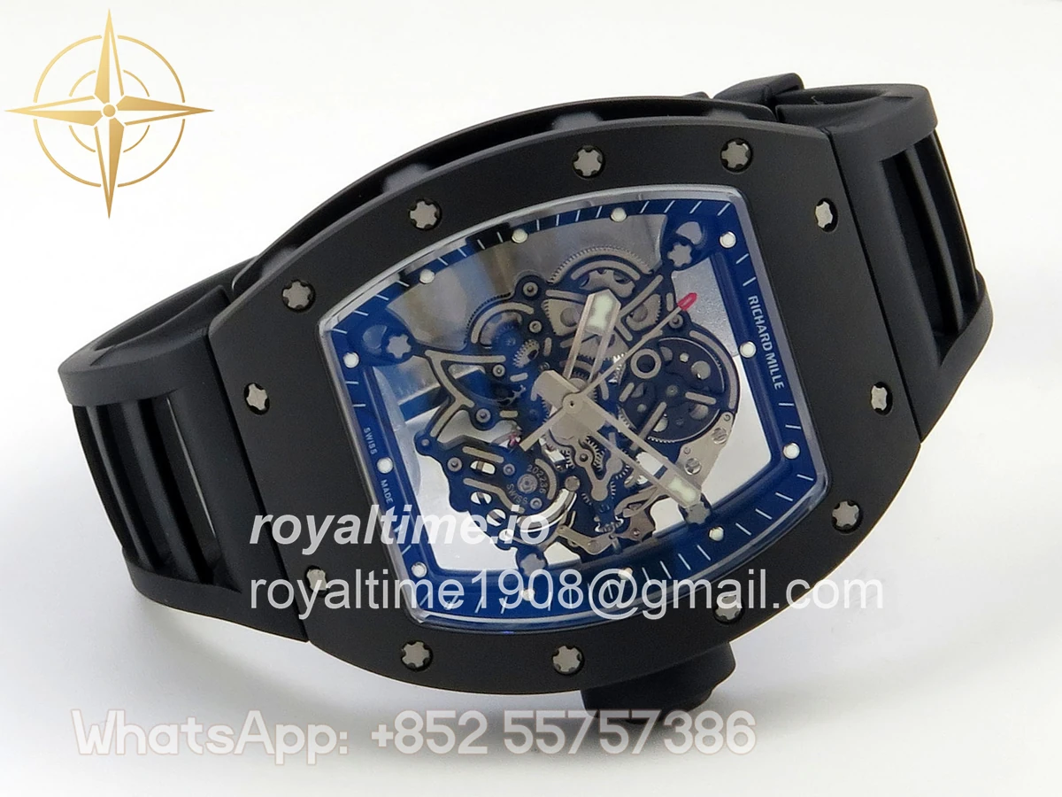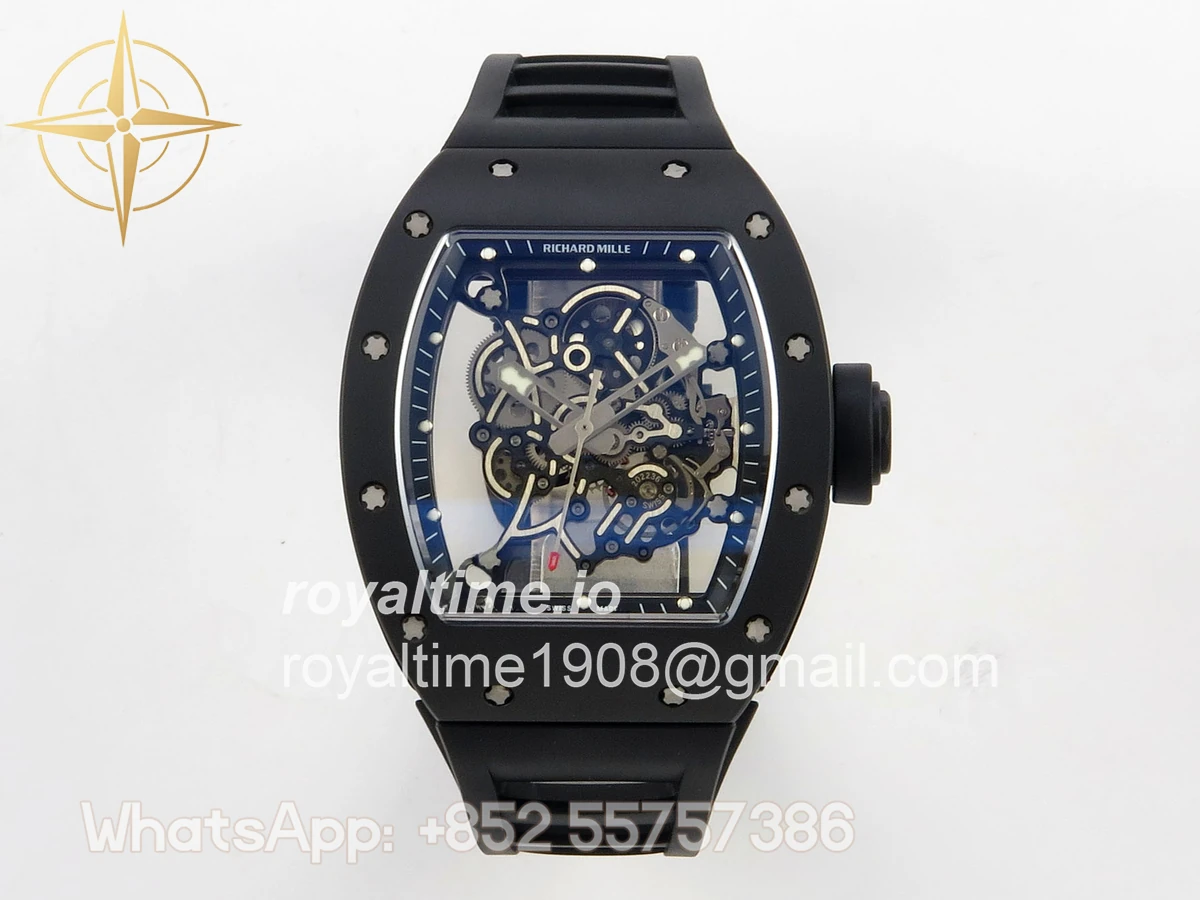 Richard Mille RM055 Black Ceramic MLF Black/White Inner Bezel on Black Rubber Strap RMUL2 V2 (Brushed Ribs)