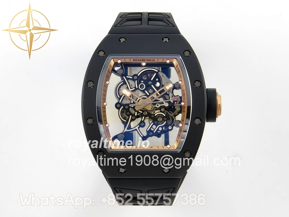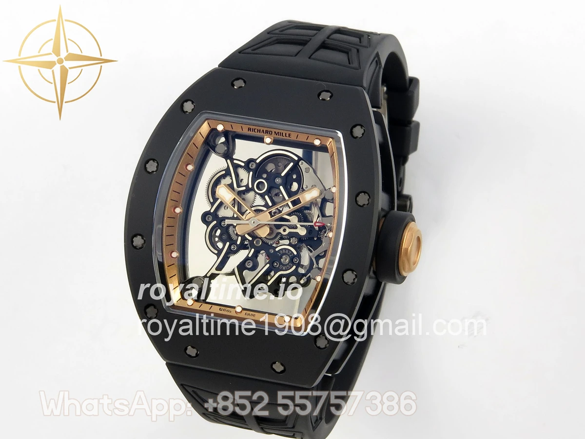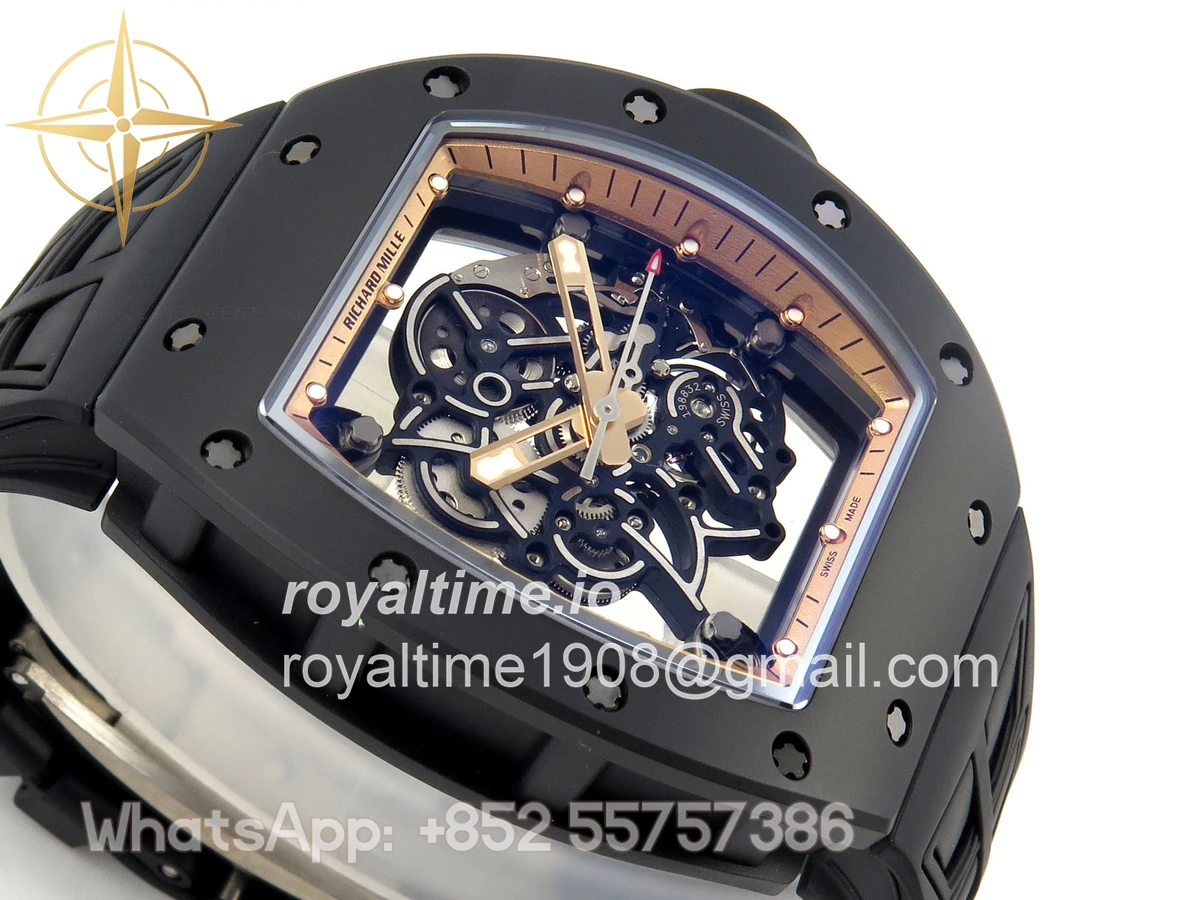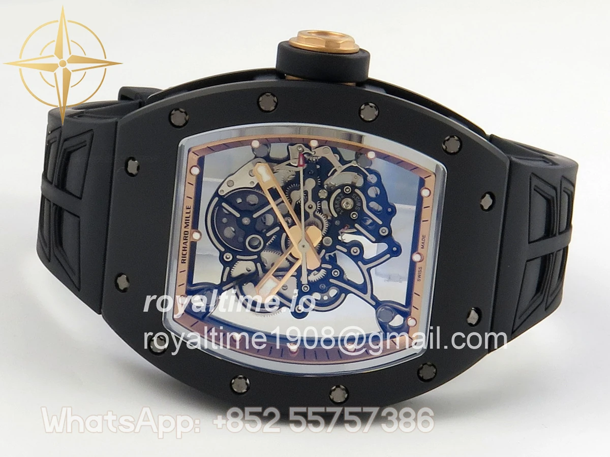 Richard Mille RM055 Black Ceramic UMI on Black/RG Inner Bezel on Shark Rubber Strap RMUL2 Free Sprung