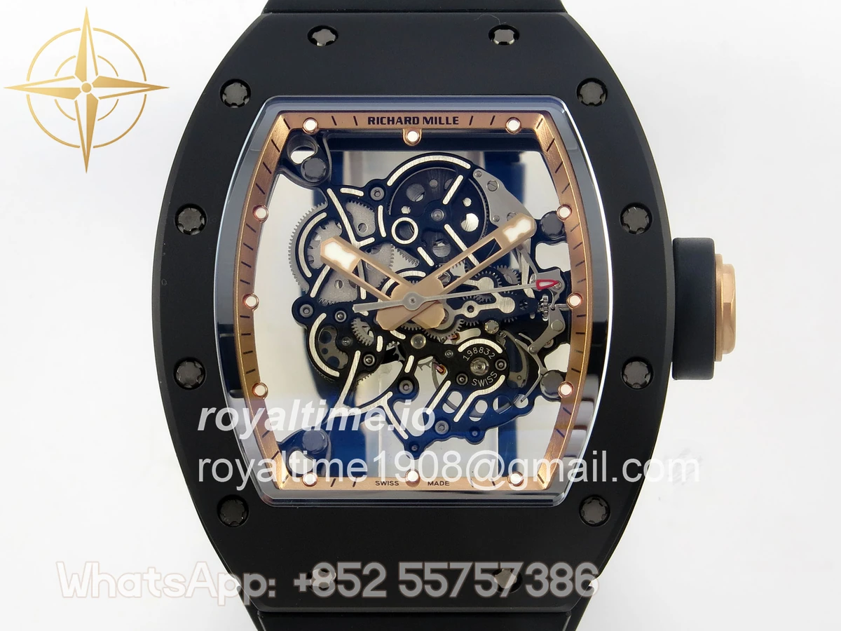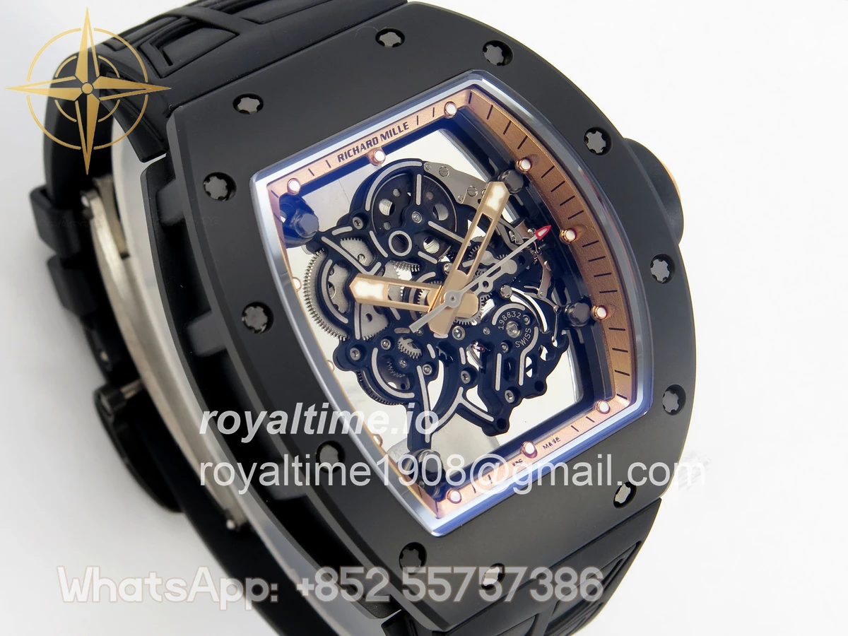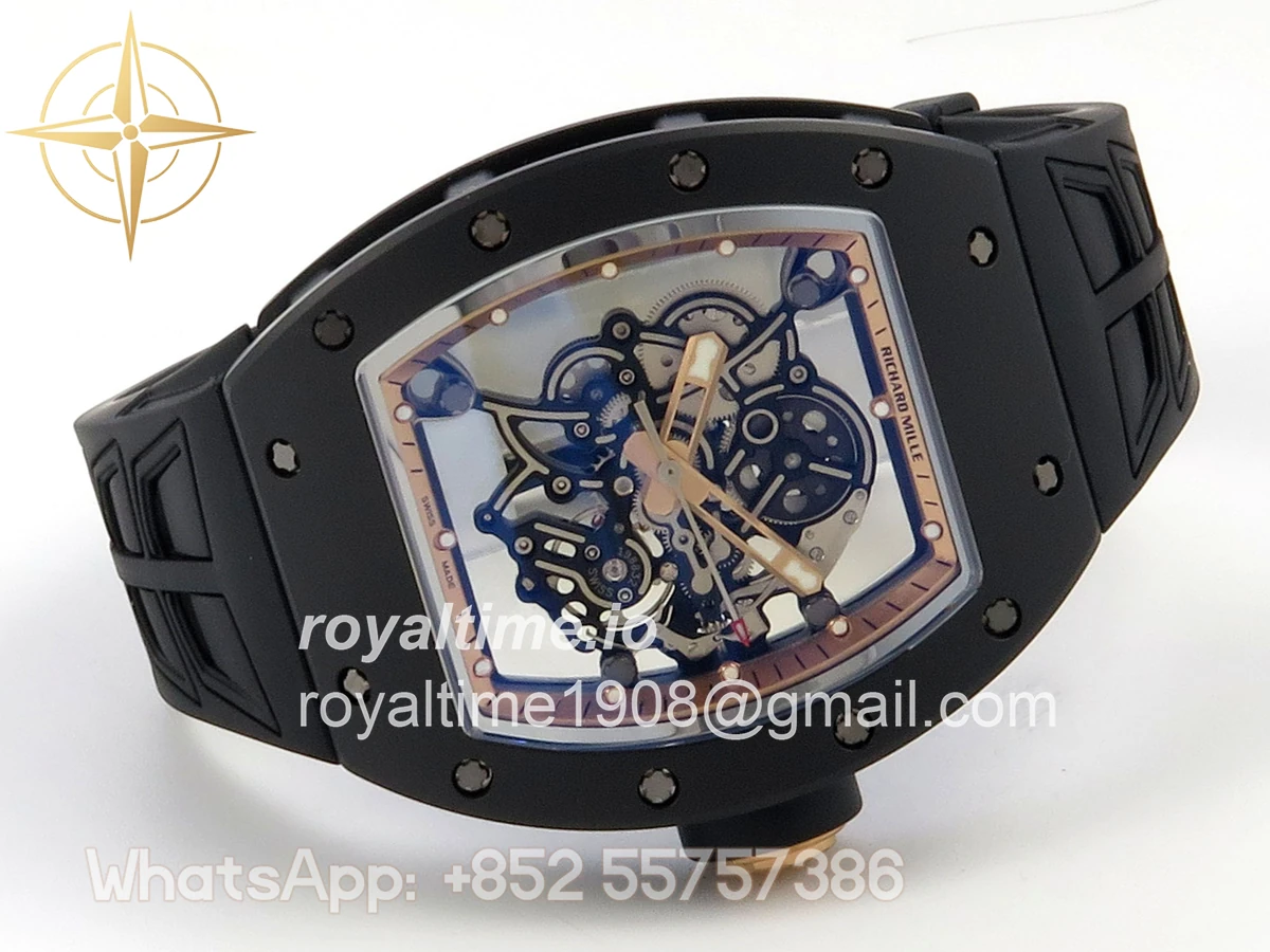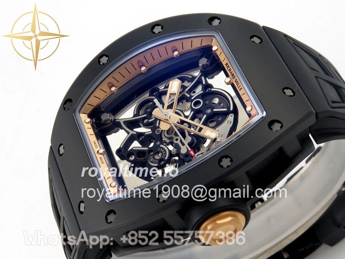 Richard Mille RM055 Black Ceramic UMI on Black/RG Inner Bezel on Shark Rubber Strap RMUL2 Free Sprung