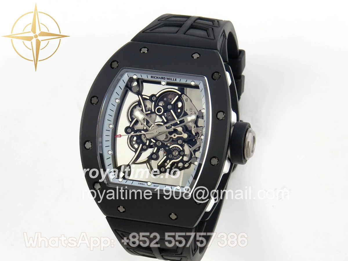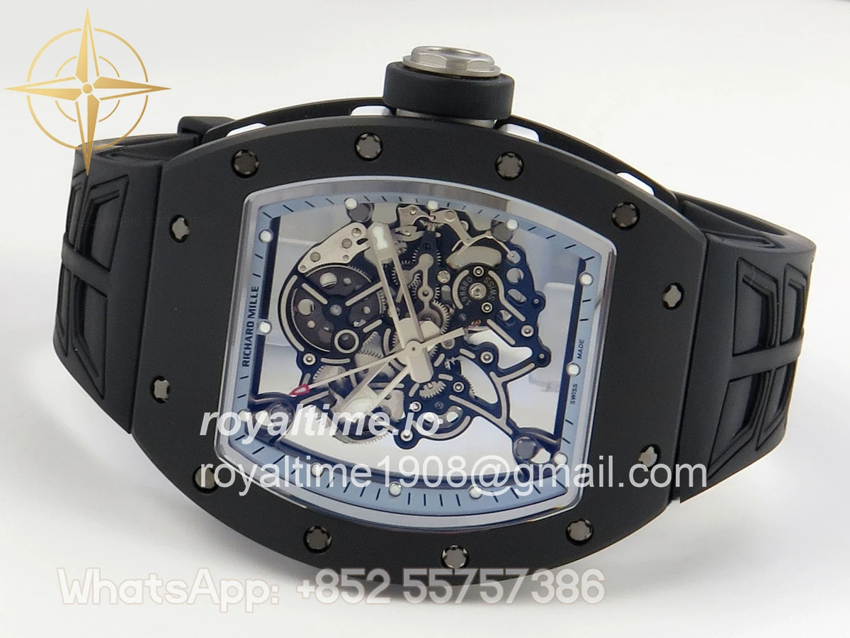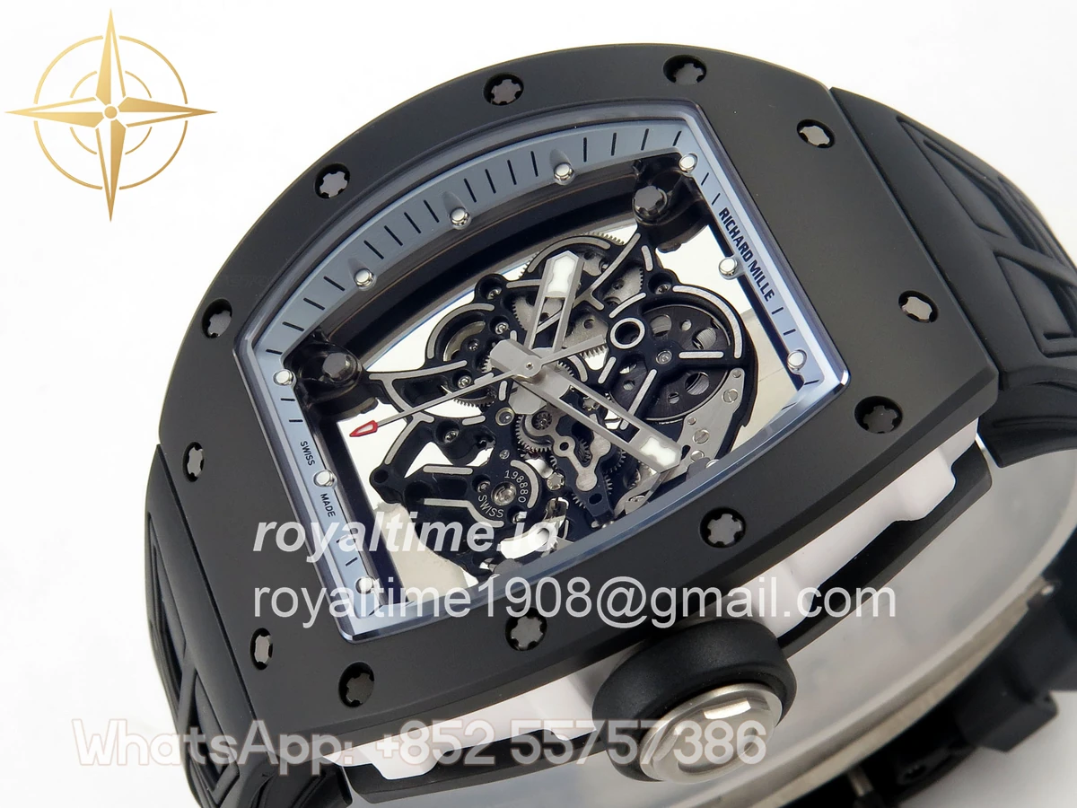 Richard Mille RM055 Black Ceramic UMI on Gray Inner Bezel on Shark Rubber Strap RMUL2 Free Sprung