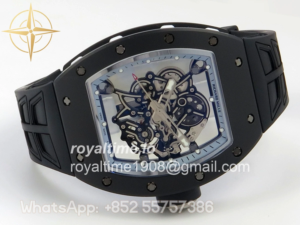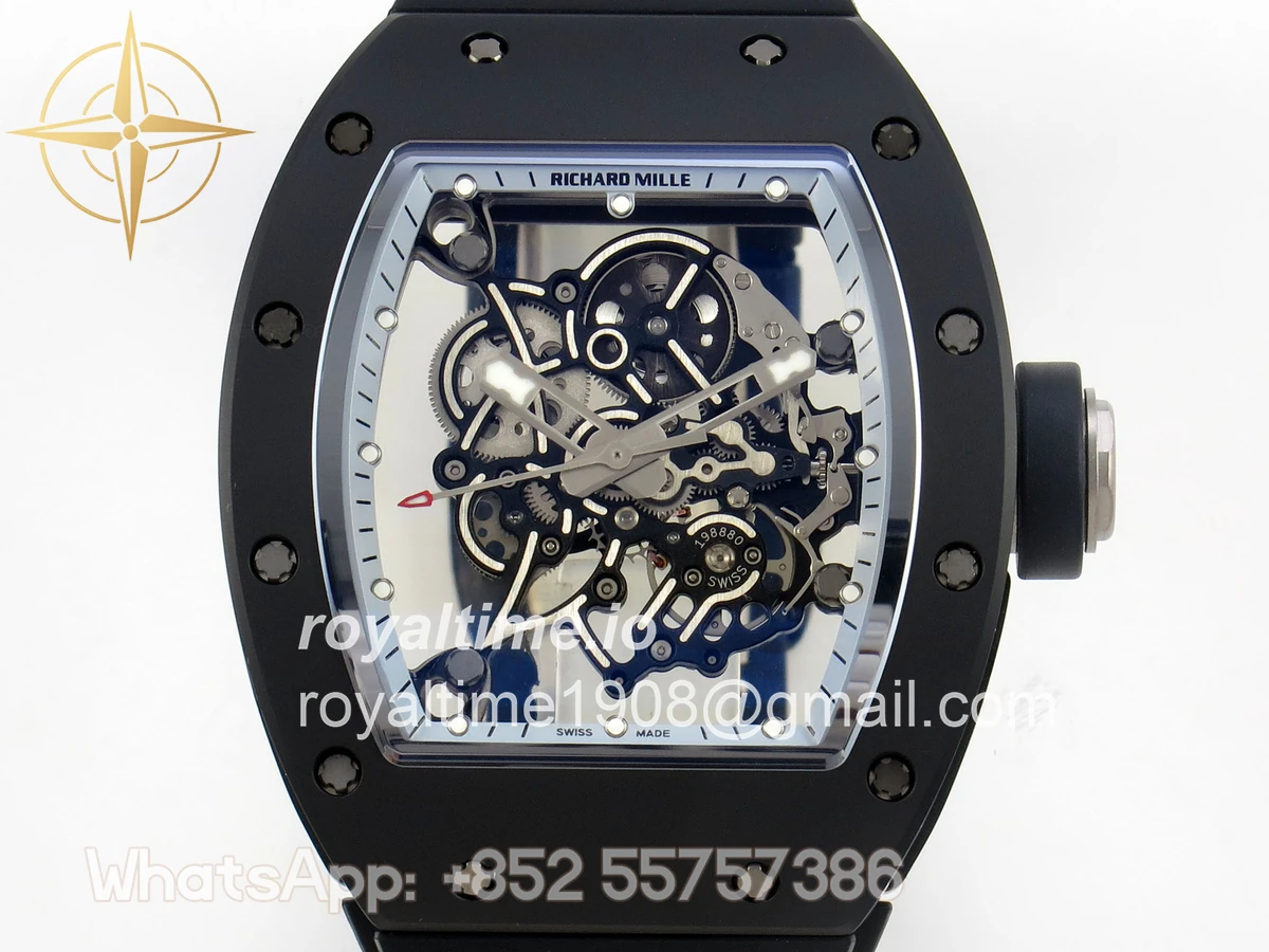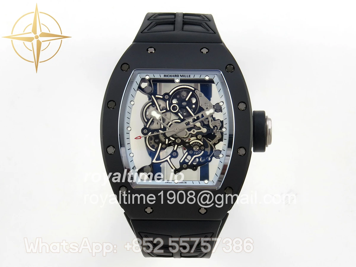 Richard Mille RM055 Black Ceramic UMI on Gray Inner Bezel on Shark Rubber Strap RMUL2 Free Sprung