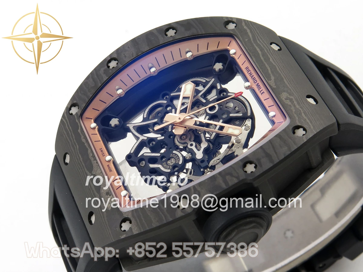 Richard Mille RM055 NTPT MLF RG Inner Bezel on Black Rubber Strap RMUL2 V2 (Brushed Ribs)