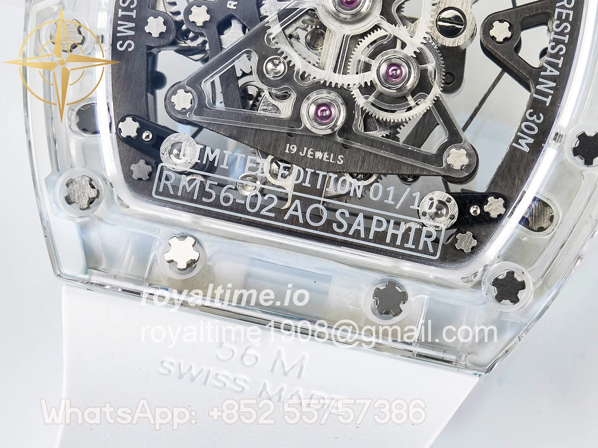 | Case | Transparent composite material case, sapphire bezel and caseback |