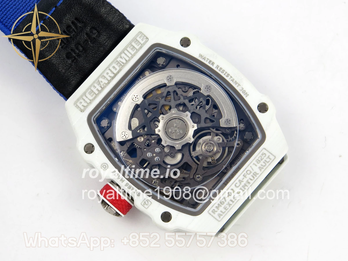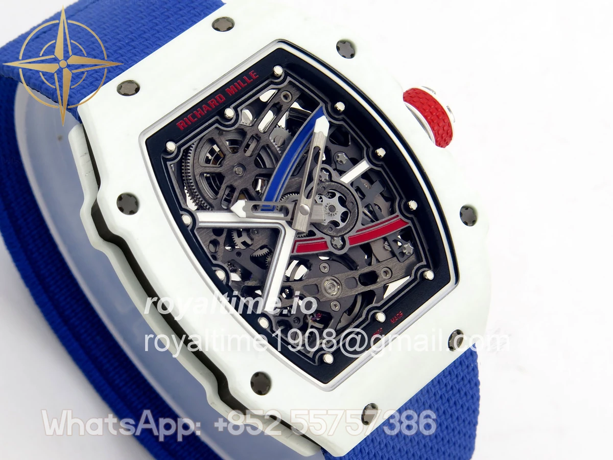 Richard Mille Umi Maker’s RM67-02 White NTPT France Blue/Red/White Skeleton Dial on Nylon strap CRMA7 V2