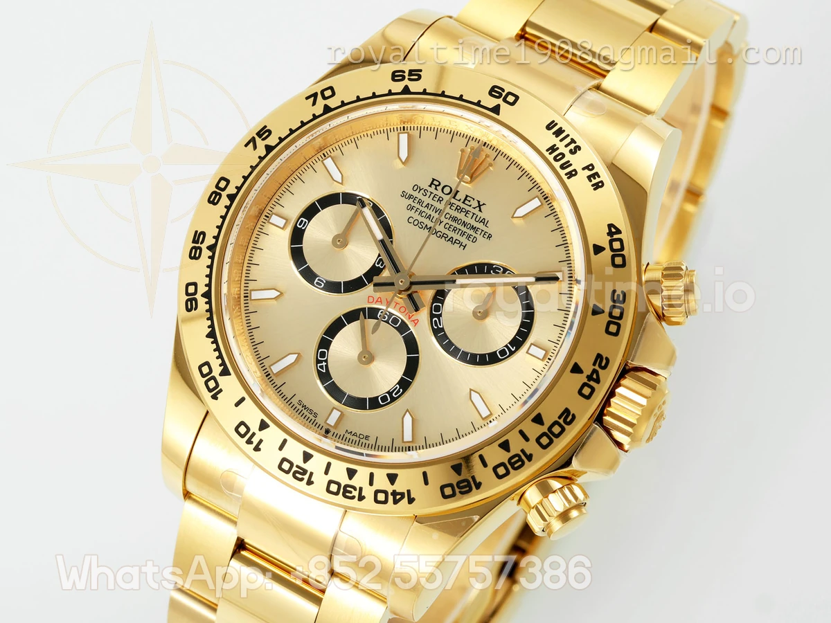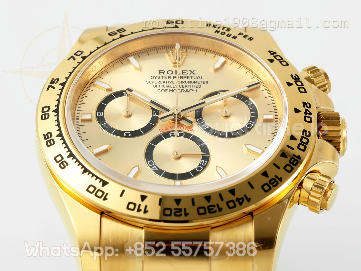 | Bezel | Black ceramic tachymeter bezel, real platinum plated correct markers, same shape and depth as genuine bezel |