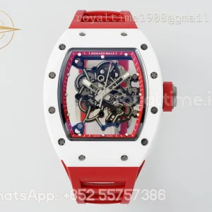 Richard Mille Richard Mille RM055 APSF White Ceramic Red inner Bezel Red Crown on White Rubber Strap Super Clone V2 RMUL2