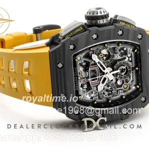 Richard Mille RM 011 Automatic Flyback Chronograph Carbon on Yellow Rubber Strap