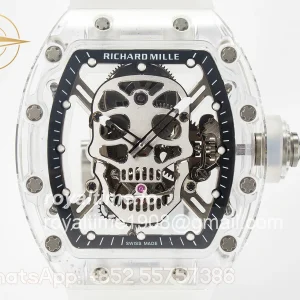 Richard Mille RM52-01 White Transparent Tourbillon MSF Skull Dial on White Rubber Strap